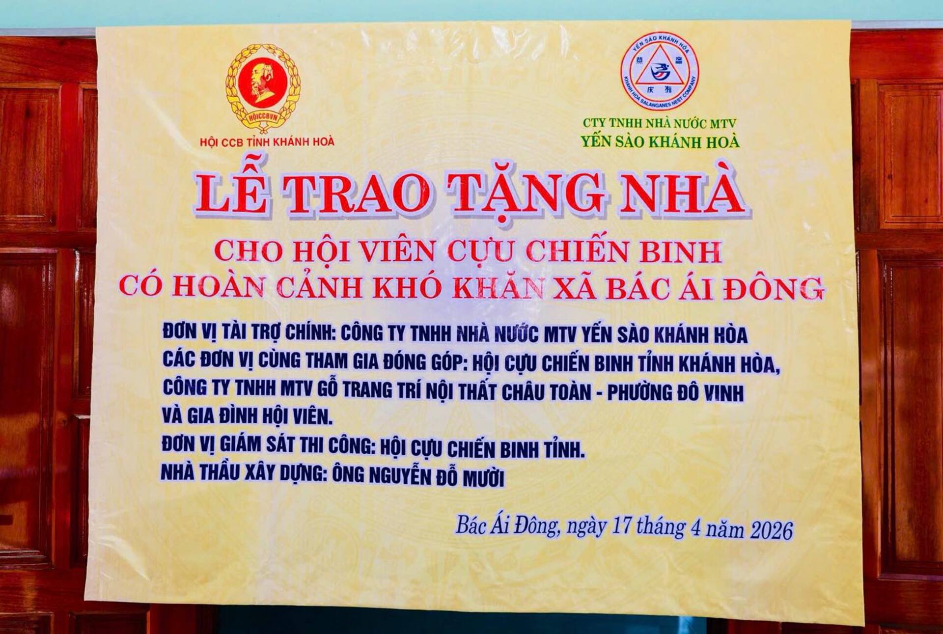 Phát biểu tại lễ bàn giao, đại diện Hội CCB Công ty Yến sào Khánh Hòa chia sẻ: Việc hỗ trợ xây dựng nhà "Nghĩa tình cựu chiến binh" là hoạt động thường niên mang ý nghĩa nhân văn sâu sắc, thể hiện đạo lý "Uống nước nhớ nguồn" và tinh thần tương thân tương ái của ban lãnh đạo cùng toàn thể cán bộ, nhân viên công ty.