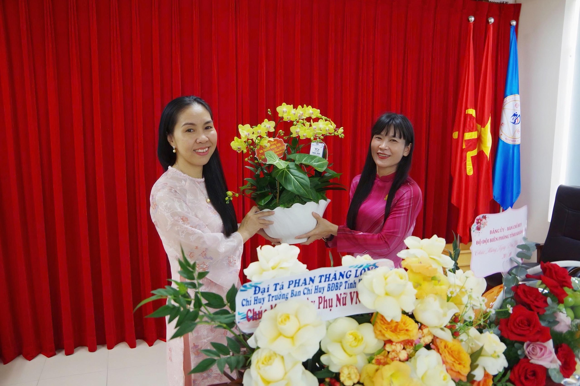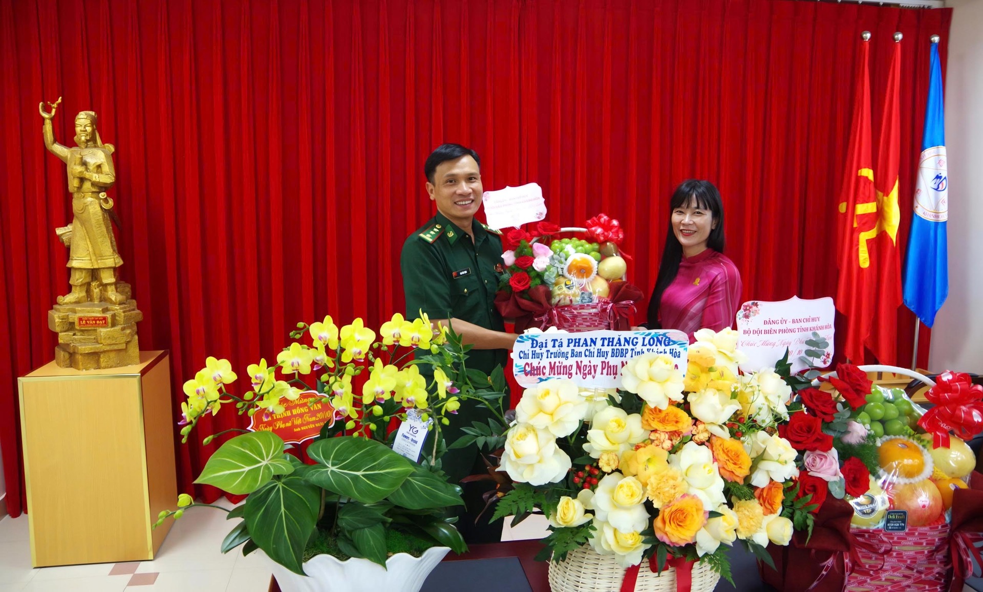 ⏰Nhân dịp kỷ niệm Ngày Phụ nữ Việt Nam 20/10, Ban Lãnh đạo Bộ đội Biên phòng tỉnh Khánh Hòa đã gửi tặng những giỏ hoa tươi thắm chúc mừng Đ/c Trịnh Thị Hồng Vân – Chủ tịch HĐTV Công ty Yến sào Khánh Hòa.