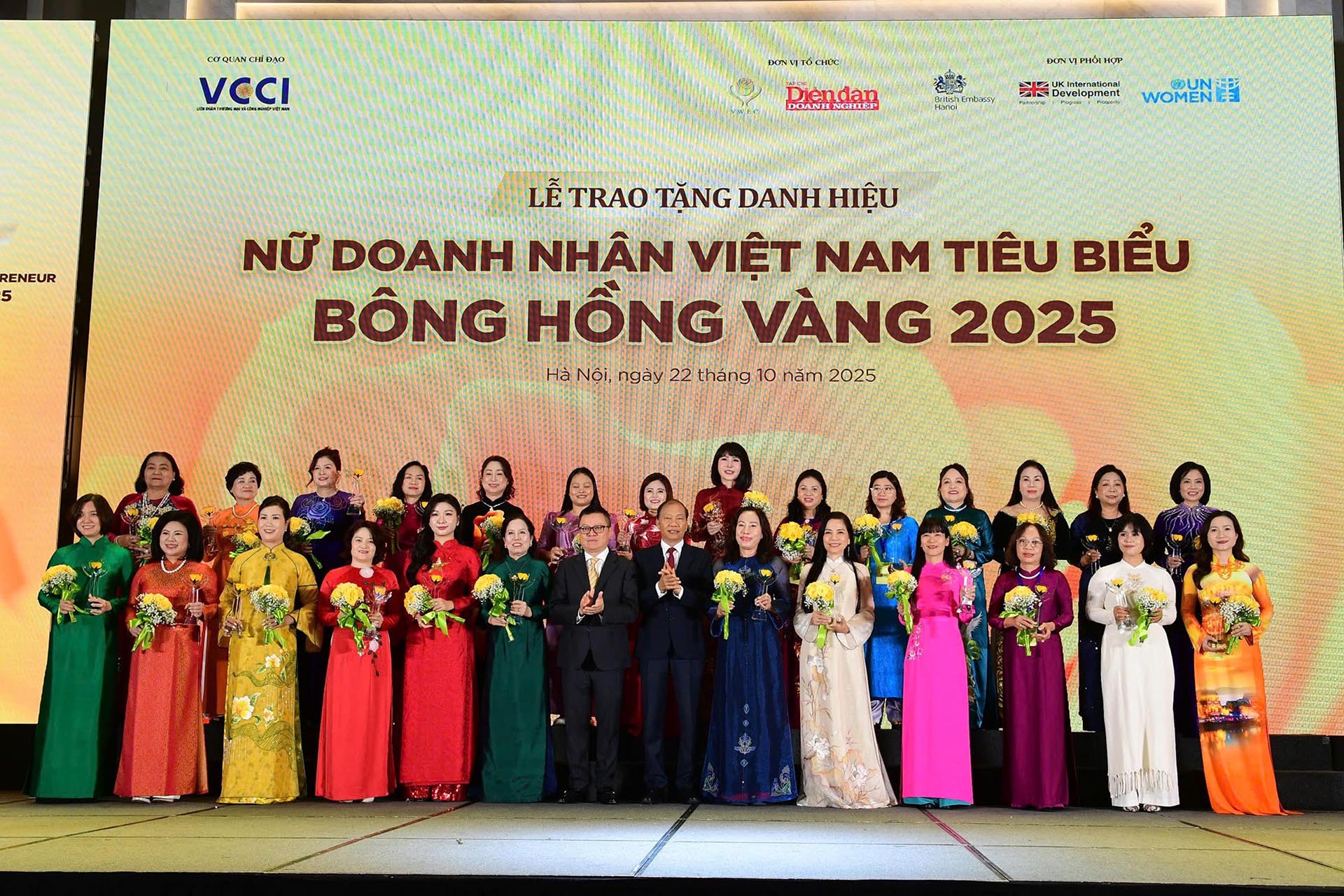 ⏰Ngày 22/10/2025 tại Hà Nội, Phòng Thương mại và Công nghiệp Việt Nam (VCCI) long trọng tổ chức Lễ trao tặng Danh hiệu “Nữ Doanh nhân Việt Nam tiêu biểu – Bông hồng vàng năm 2025”, nhằm tôn vinh những nữ doanh nhân có thành tích xuất sắc, đóng góp tích cực cho sự phát triển kinh tế – xã hội của đất nước.