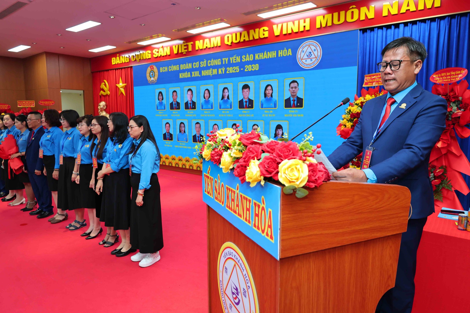 Dịp này, Công ty Yến sào Khánh Hòa khen thưởng 6 tập thể và 25 cá nhân có thành tích xuất sắc trong công tác công đoàn giai đoạn 2023 – 2025.