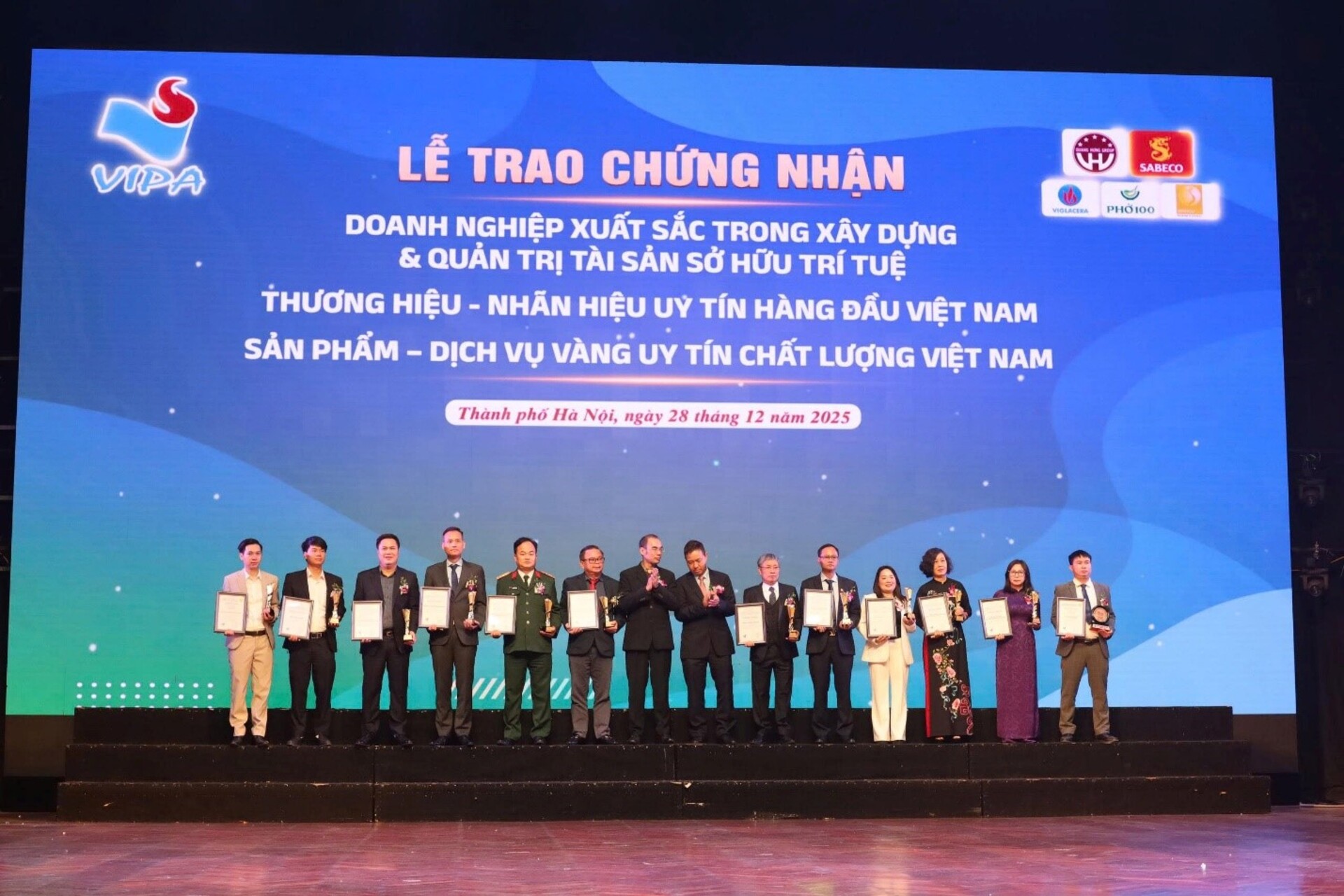Ngày 28/12/2025, tại Nhà hát Quân đội (Hà Nội), đã diễn ra “Lễ Tổng kết và trao chứng nhận Doanh nghiệp xuất sắc trong xây dựng và quản trị tài sản sở hữu trí tuệ – Thương hiệu, nhãn hiệu uy tín hàng đầu – Sản phẩm, Dịch vụ vàng uy tín, chất lượng Việt Nam năm 2025”.