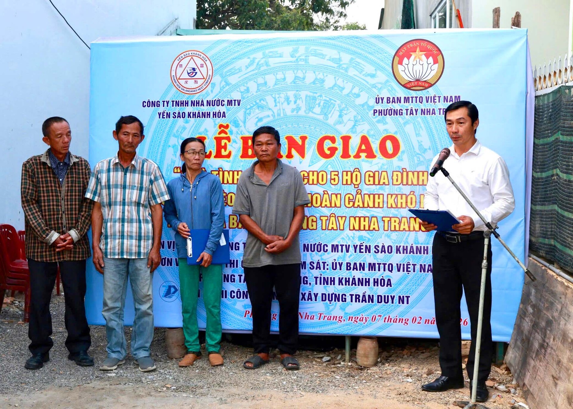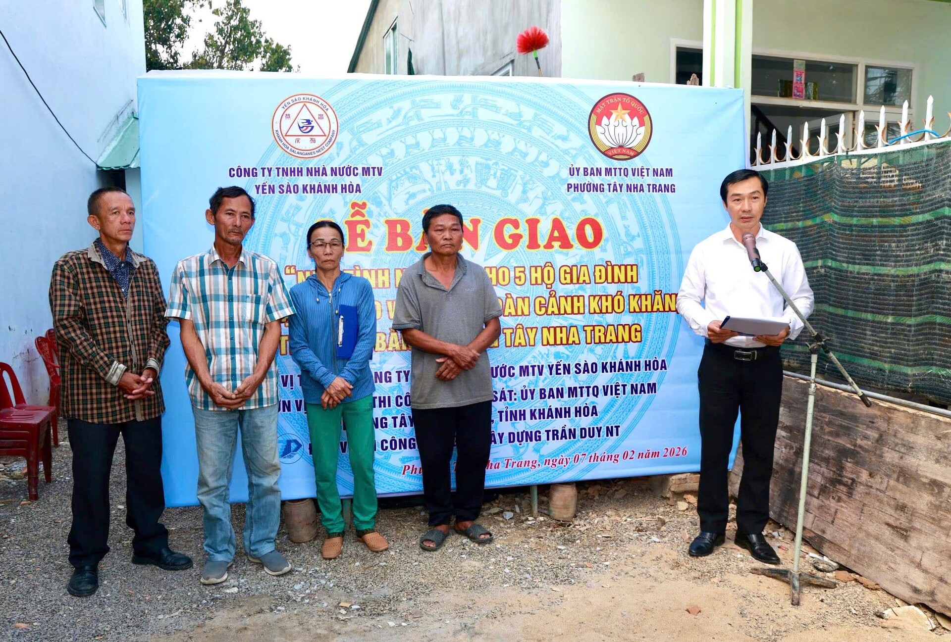 Ngày 07/02/2026, Yến sào Khánh Hòa phối hợp với Uỷ ban MTTQ Việt Nam P. Tây Nha Trang tổ chức Lễ bàn giao 05 căn nhà tình nghĩa cho các hộ gia đình có hoàn cảnh khó khăn tại địa bàn.