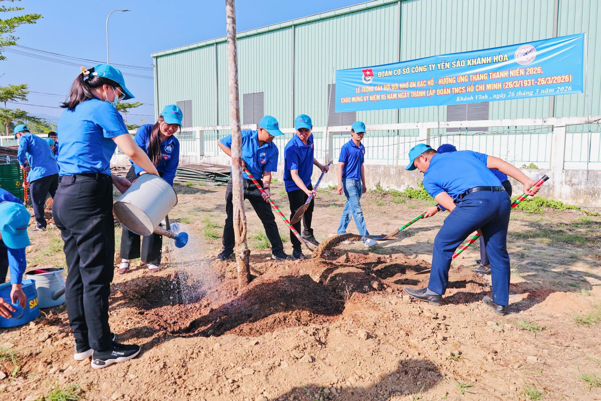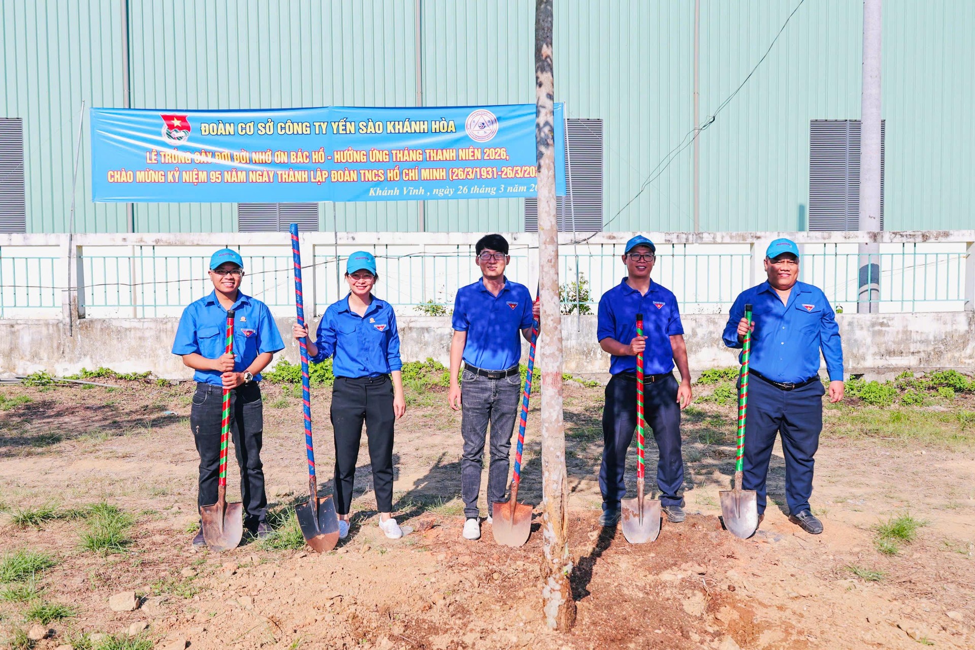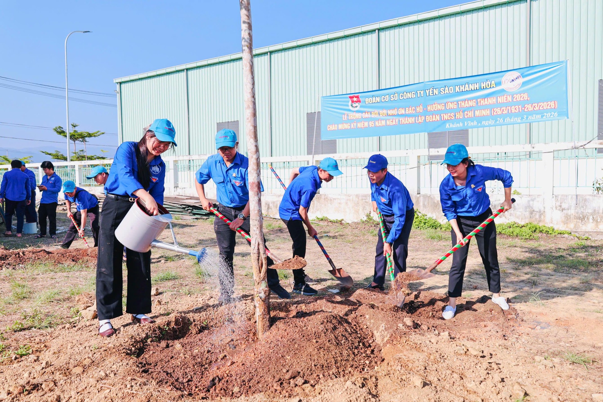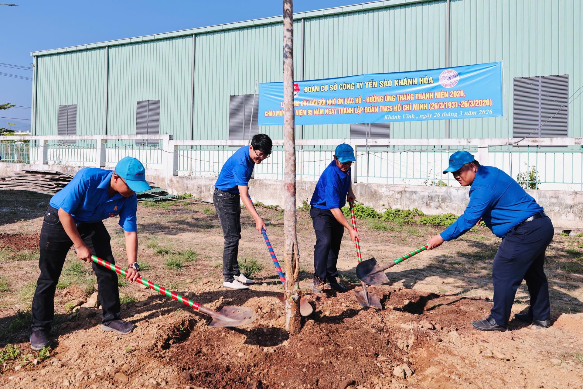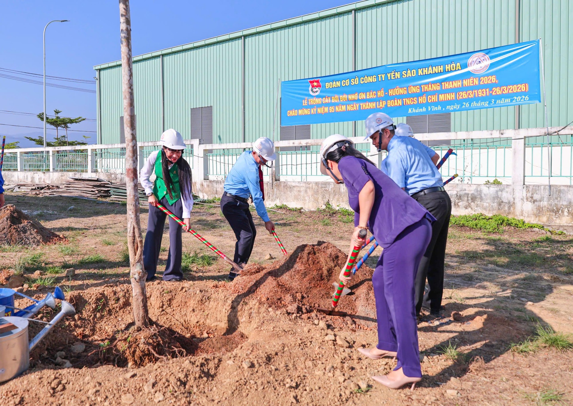 Sau lễ khởi công, hưởng ứng Tháng Thanh niên năm 2026, Ban Chấp hành Đoàn Thanh niên Công ty đã tổ chức Lễ phát động “Trồng cây đời đời nhớ ơn Chủ tịch Hồ Chí Minh” gắn với “Hành trình kết nối sức trẻ Yến sào Khánh Hòa”. Toàn thể đoàn viên, thanh niên đã tiến hành trồng hơn 200 cây xanh các loại như cây bàng vuông, chuông vàng, cỏ ruby đậu phộng,…