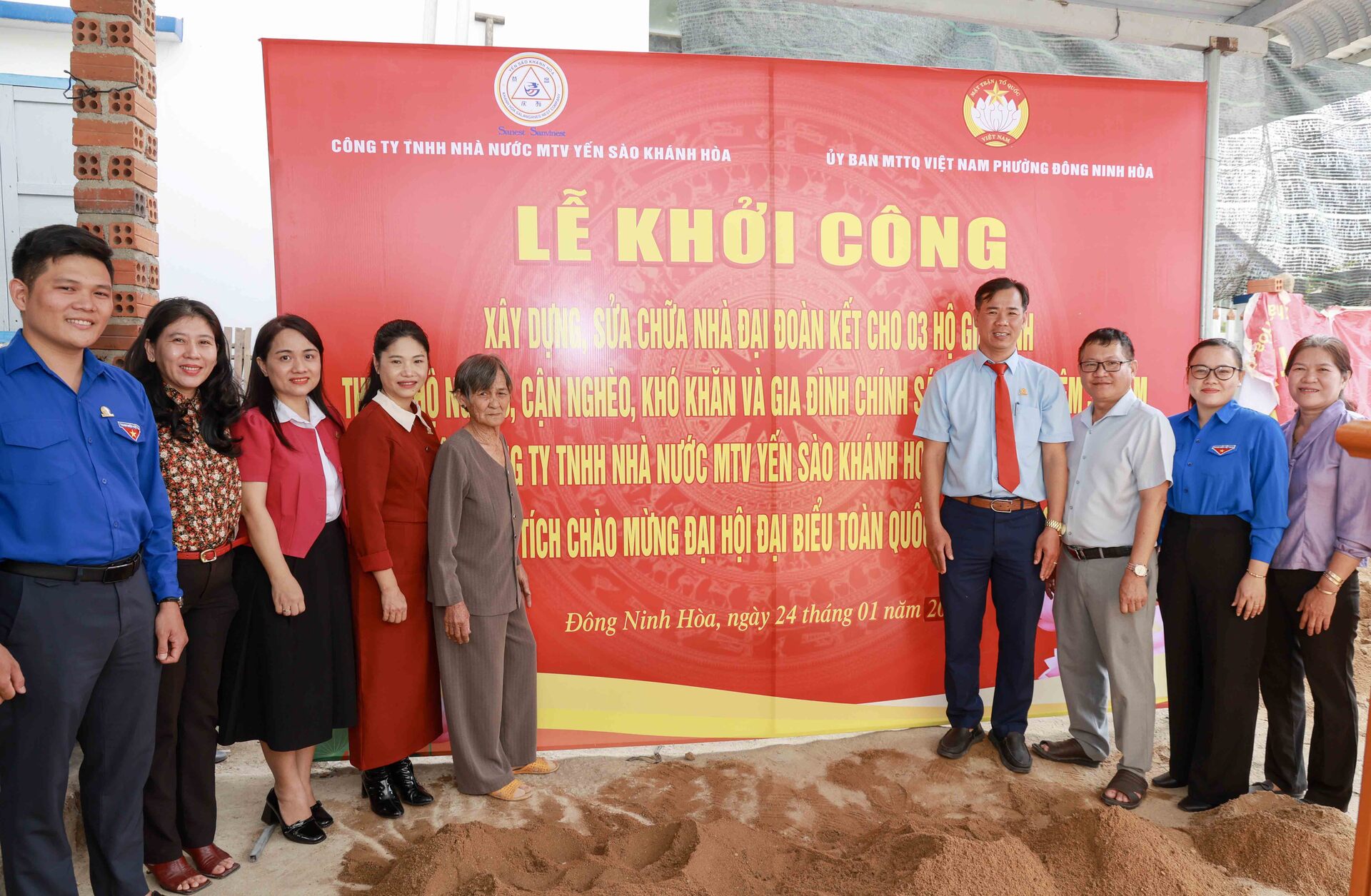 Ngày 24/1, Công ty Yến sào Khánh Hòa phối hợp với Uỷ ban MTTQ Việt Nam phường Đông Ninh Hòa tổ chức Lễ khởi công xây dựng, sửa chữa Nhà đại đoàn kết cho 3 hộ gia đình trên địa bàn.