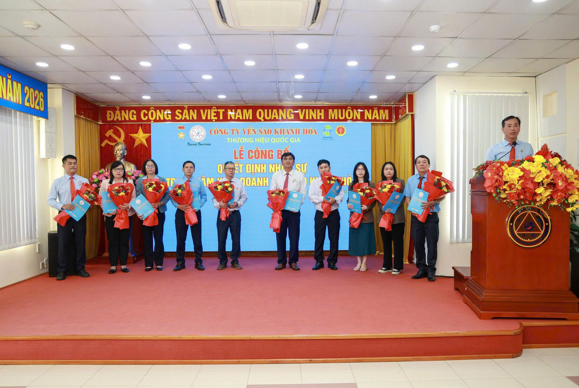 Ngày 15/01/2026, Yến sào Khánh Hòa đã long trọng tổ chức Hội nghị công bố Quyết định bổ nhiệm cán bộ quản lý và thành lập các Bộ phận trực thuộc TTKD Yến sào Khánh Hòa bao gồm: Sanest Tourist, Dịch vụ Tuyến Bắc Nam, Nông trường Dừa Cam Thịnh, QBSP & Nhà hàng Yến sào Khánh Hòa, Nuôi trồng Thủy sản Fishsan.