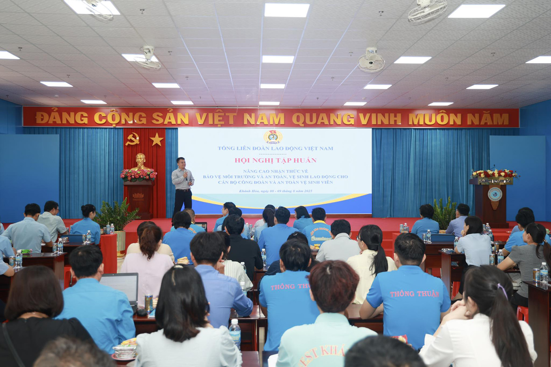 Ngày 8-8, tại Nhà máy Chế biến đặc sản Yến sào Diên Phú (CCN Diên Phú), Ban Quan hệ Lao động - Tổng Liên đoàn Lao động Việt Nam phối hợp với Liên đoàn Lao động tỉnh Khánh Hòa tổ chức Hội nghị Tập huấn bảo vệ môi trường và an toàn, vệ sinh lao động năm 2025.