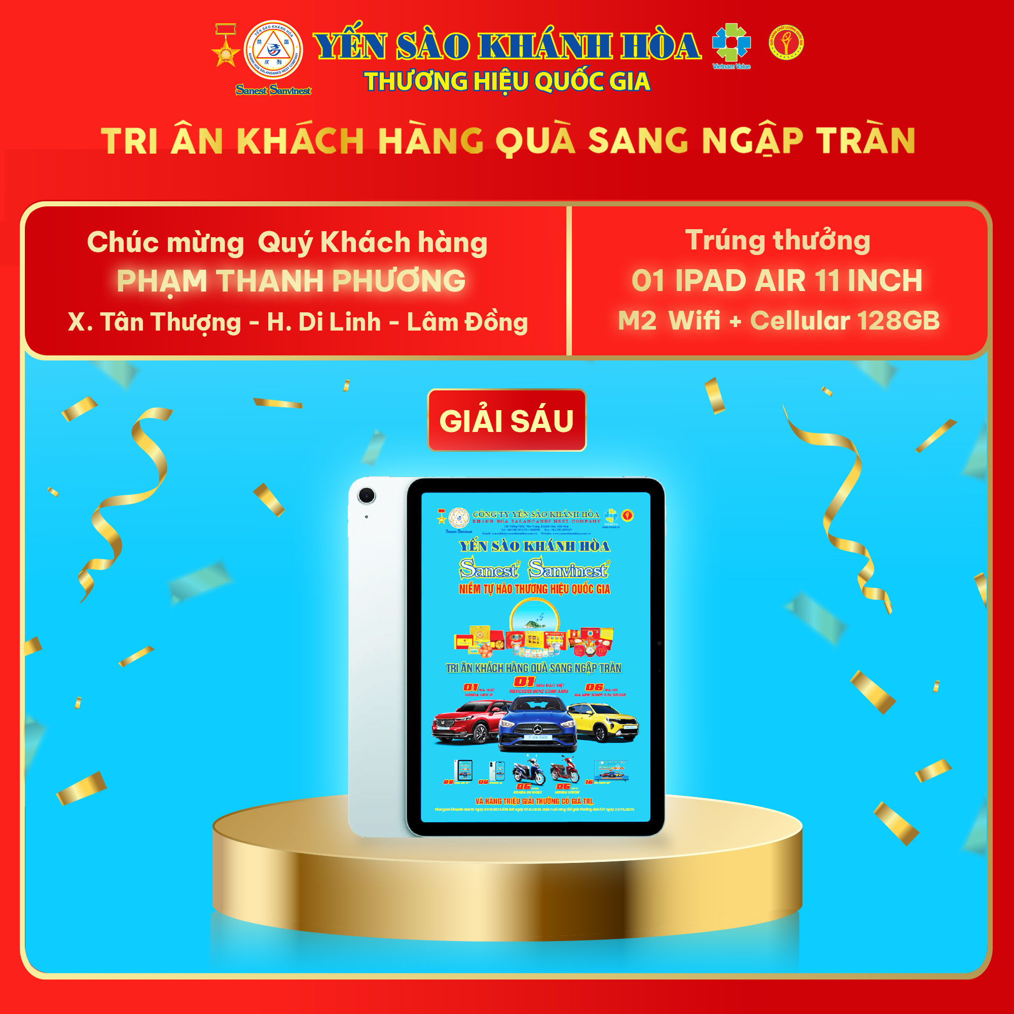 Xin chúc mừng Khách hàng: PHẠM THANH PHƯƠNG đã trở thành chủ nhân của chiếc ipad Air 11 inch M2 Wifi + Cellular 128GB từ chương trình tri ân Khách hàng 2025