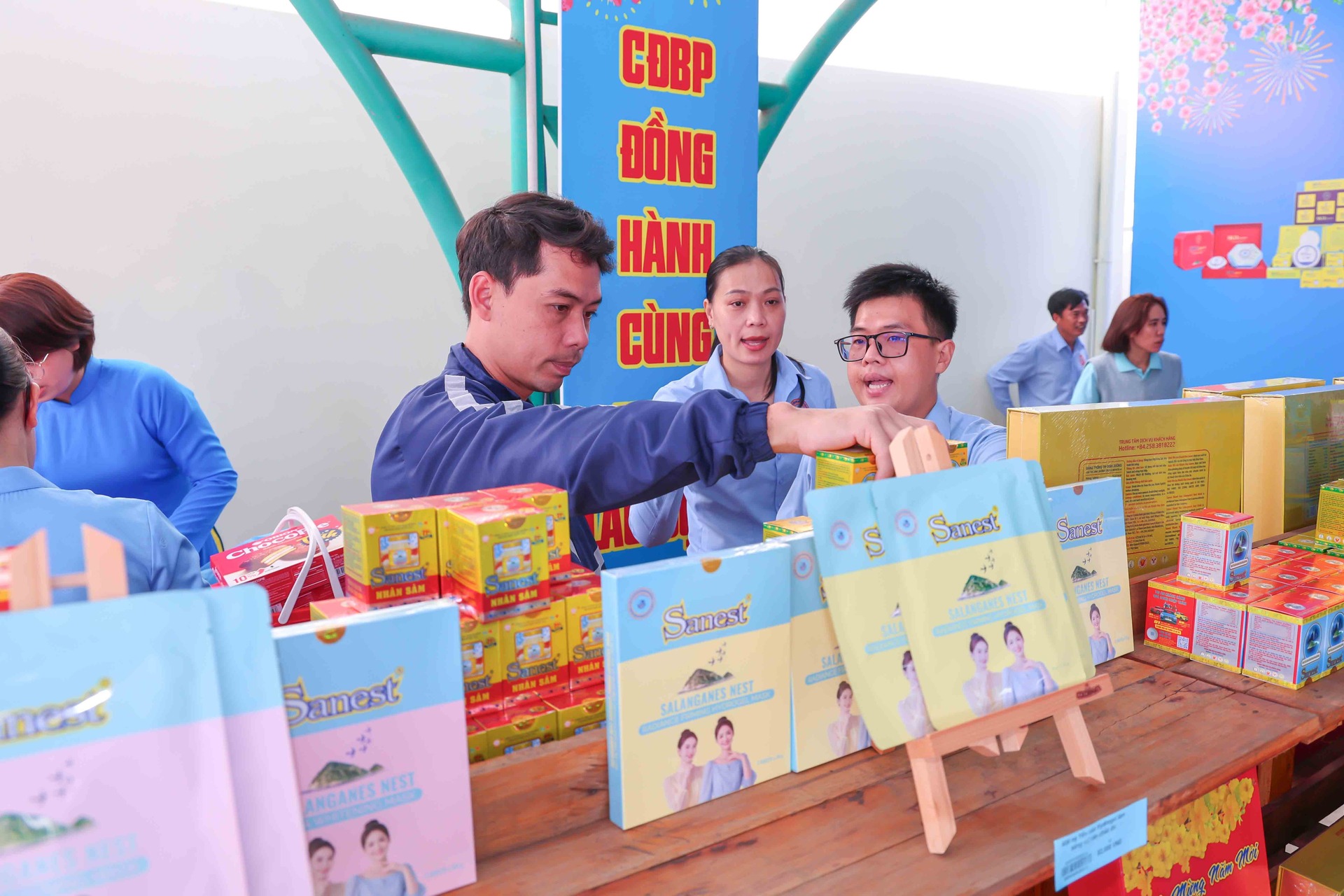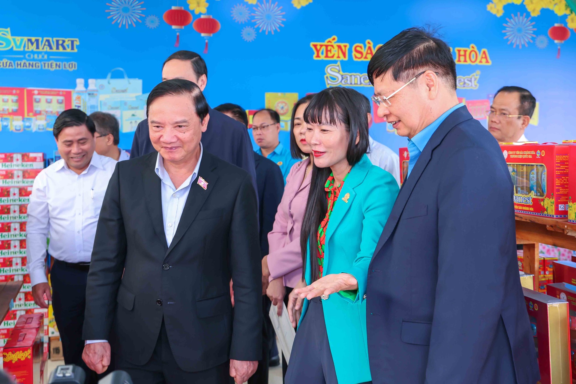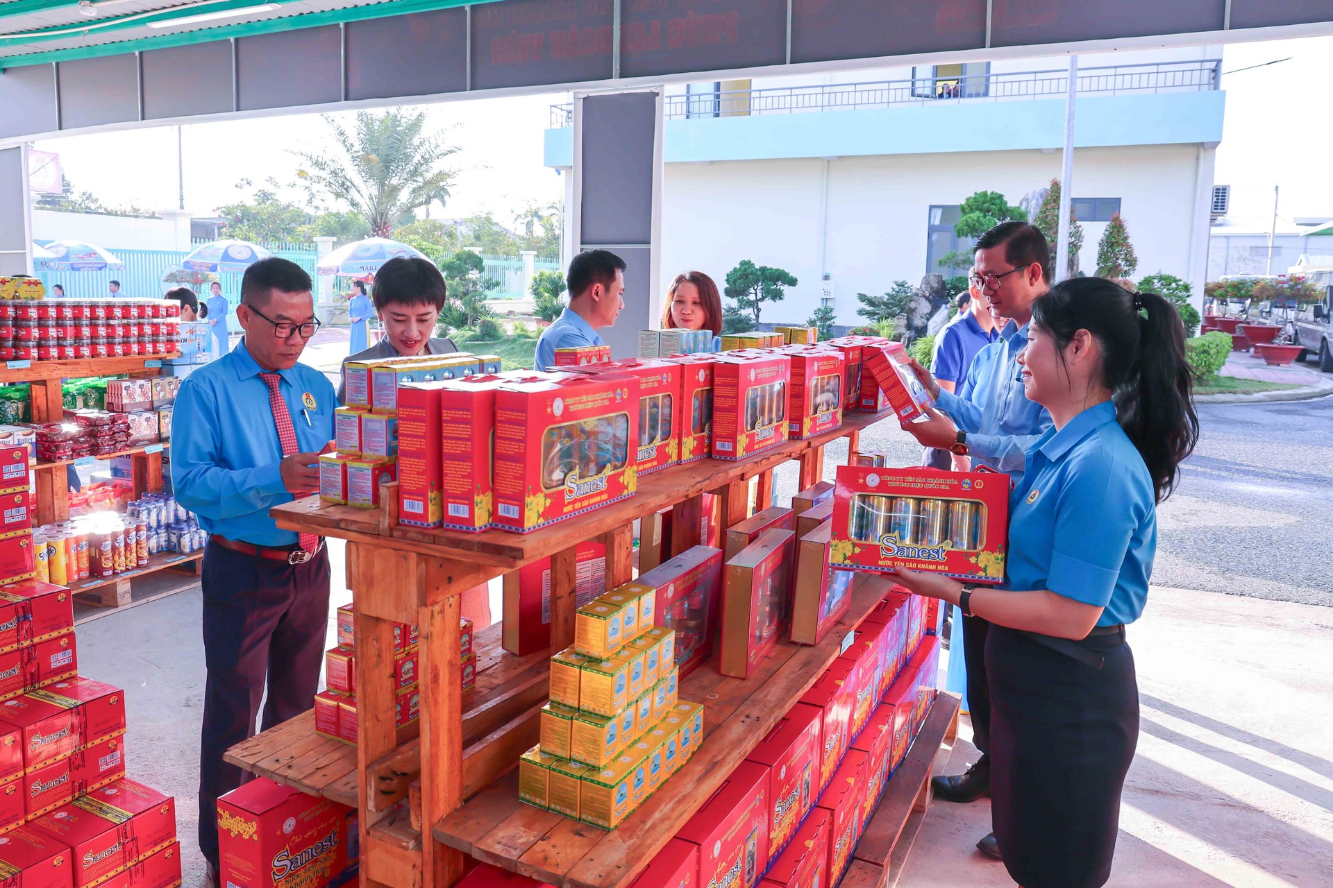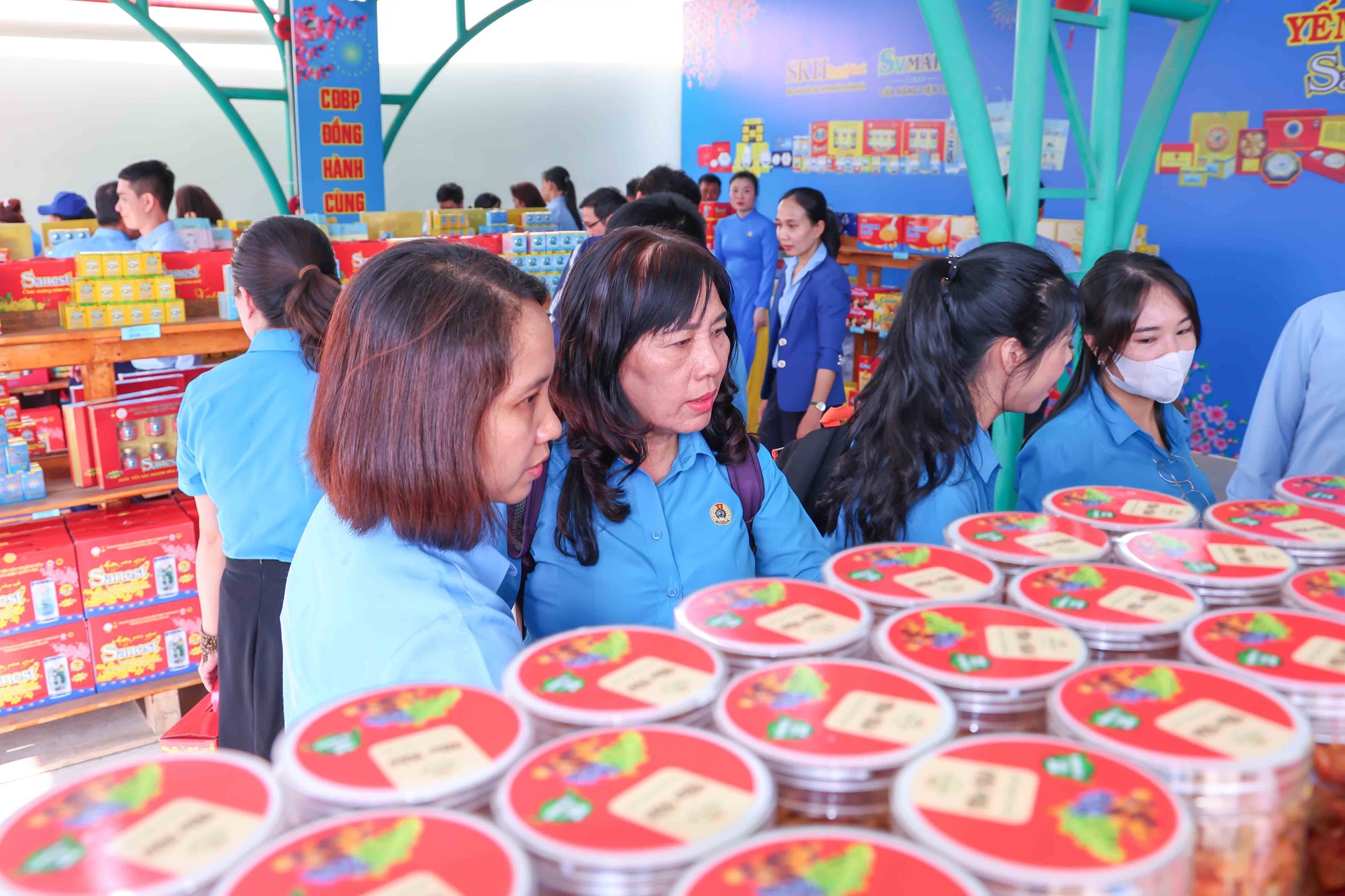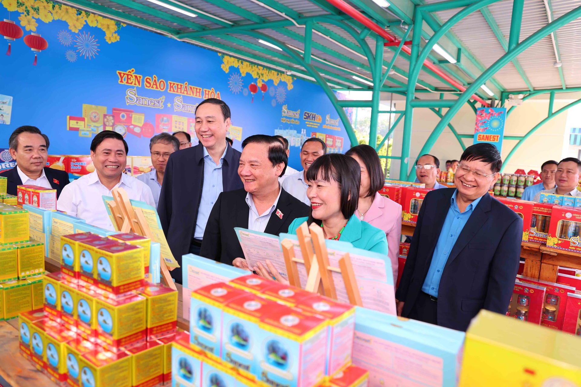 Cũng trong chương trình, Phó Chủ tịch Quốc hội Nguyễn Khắc Định đã đến tham quan gian hàng không lợi nhuận của Nhà máy Chế biến Đặc sản Yến sào. Gian hàng trưng bày các dòng sản phẩm chủ lực mang thương hiệu Yến sào Khánh Hòa, Sanest, Sanvinest, Sanest Foods được giới thiệu với mức giá ưu đãi, giúp người lao động có thêm lựa chọn chăm sóc sức khỏe cho gia đình trong dịp năm mới.