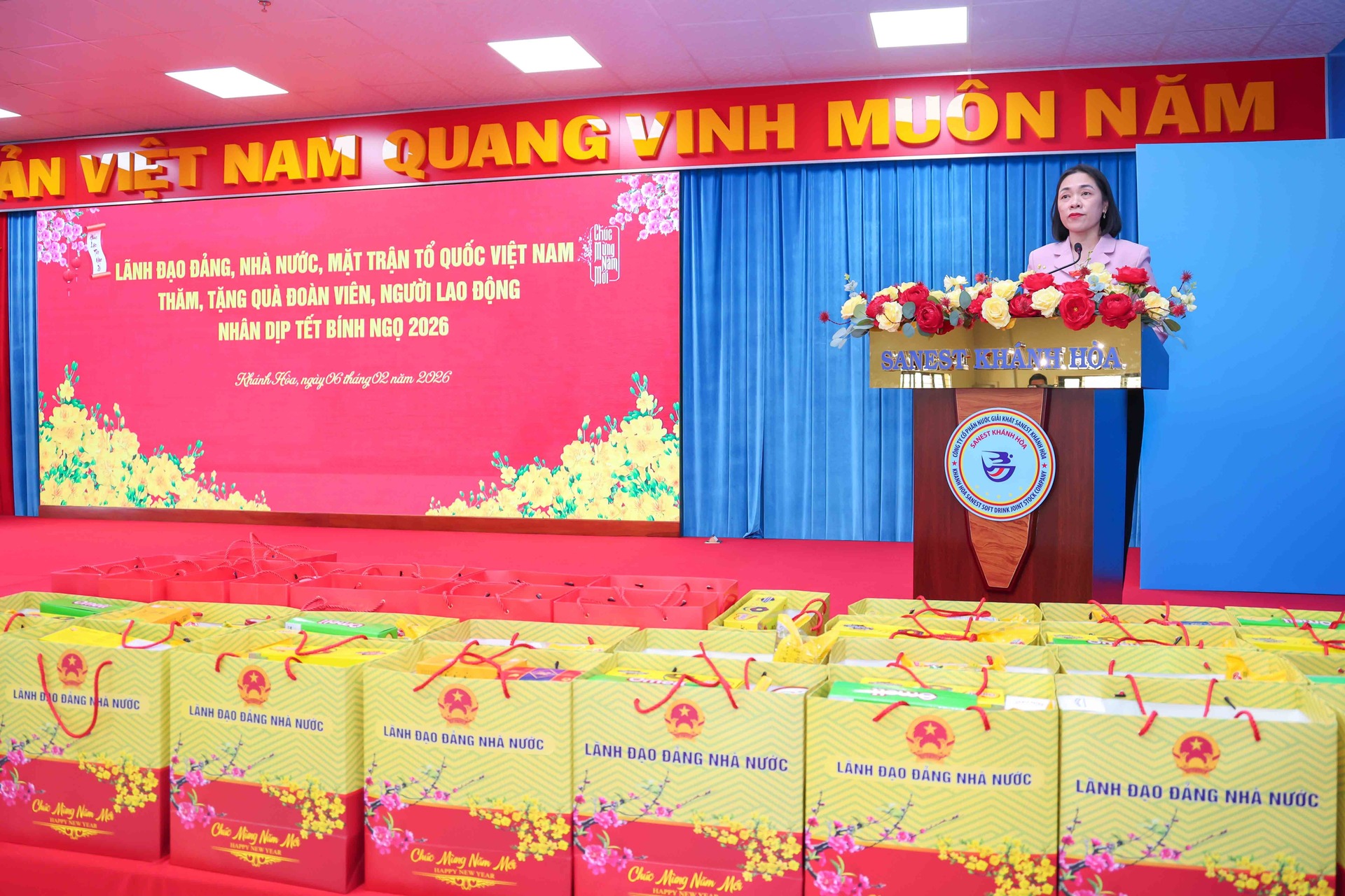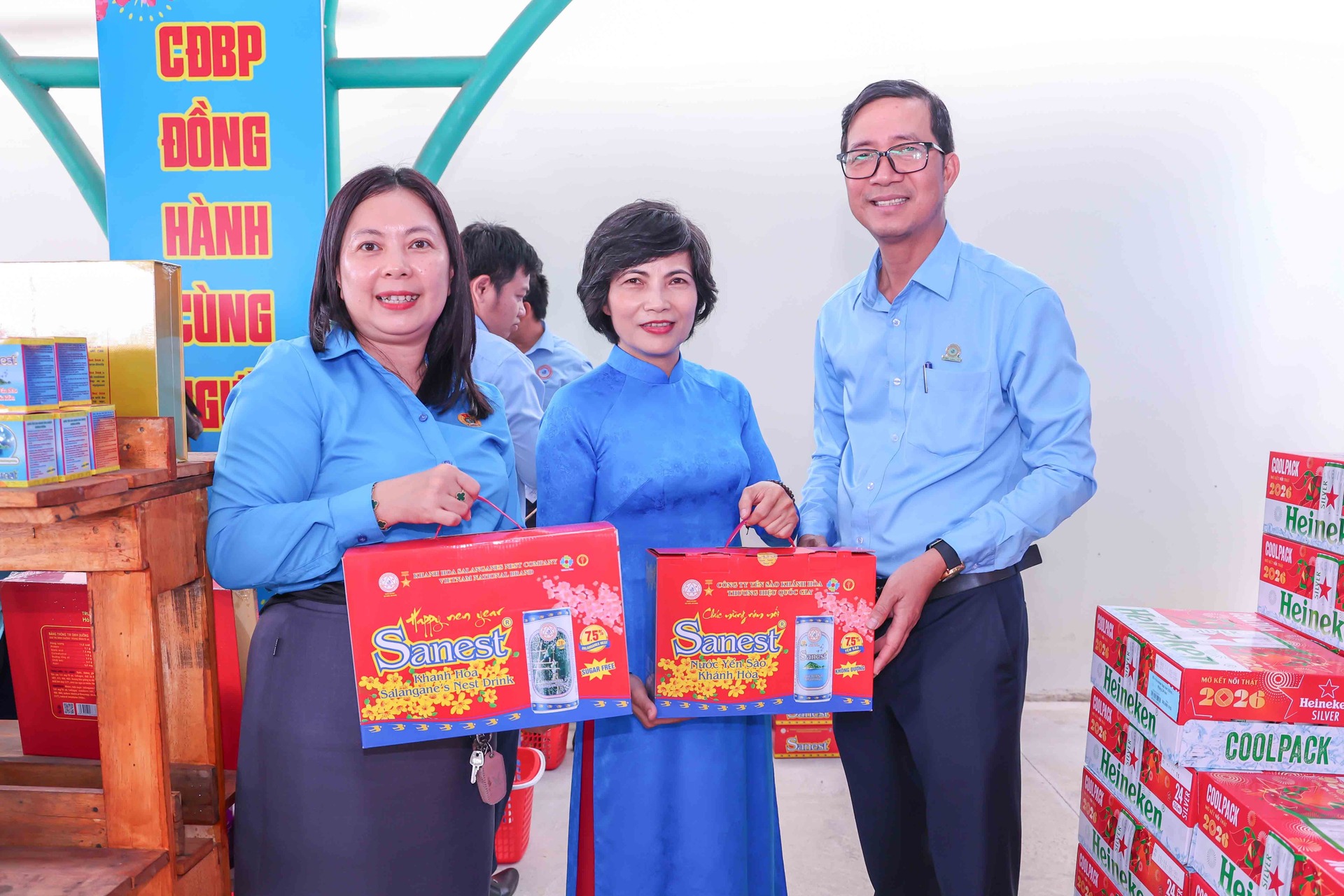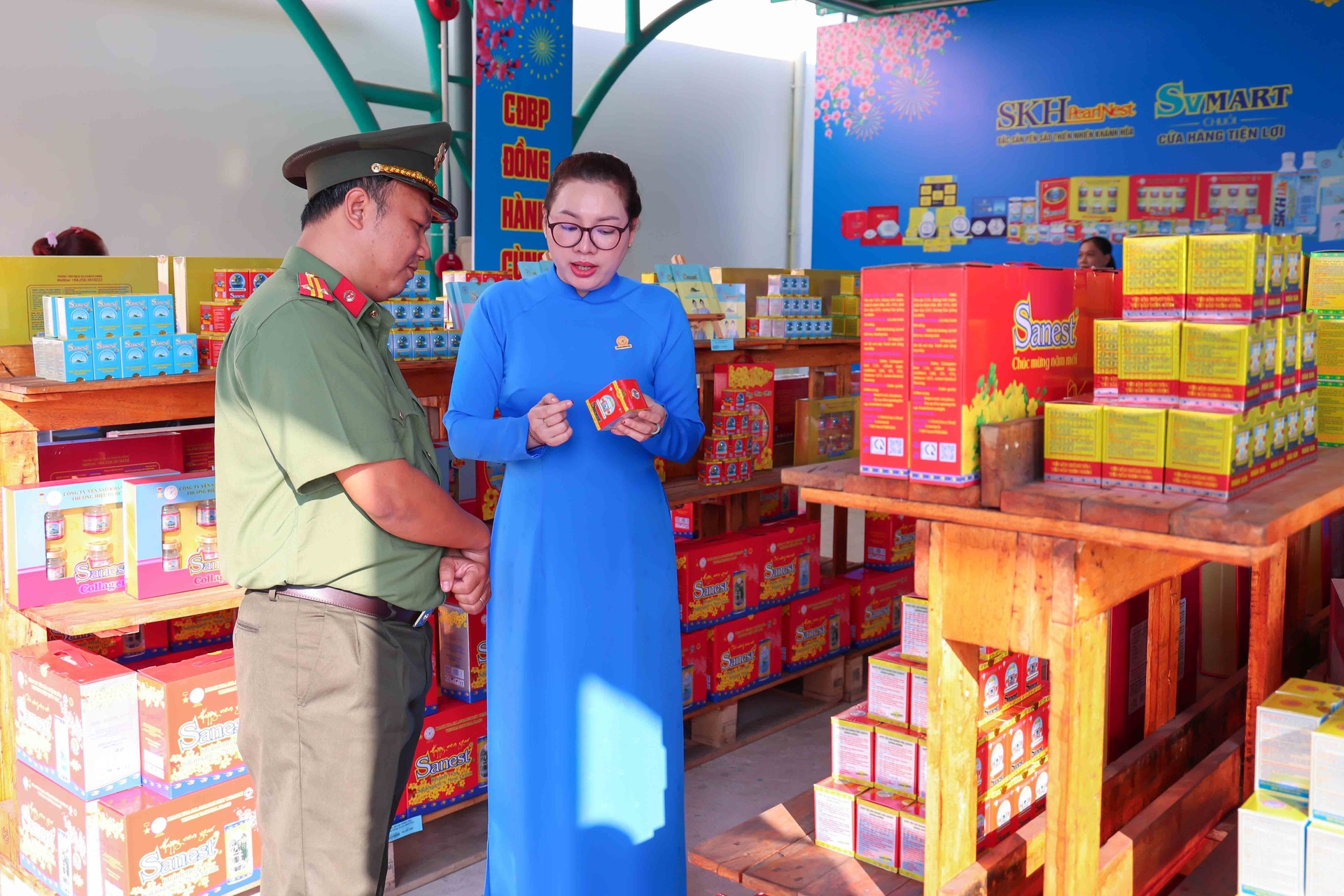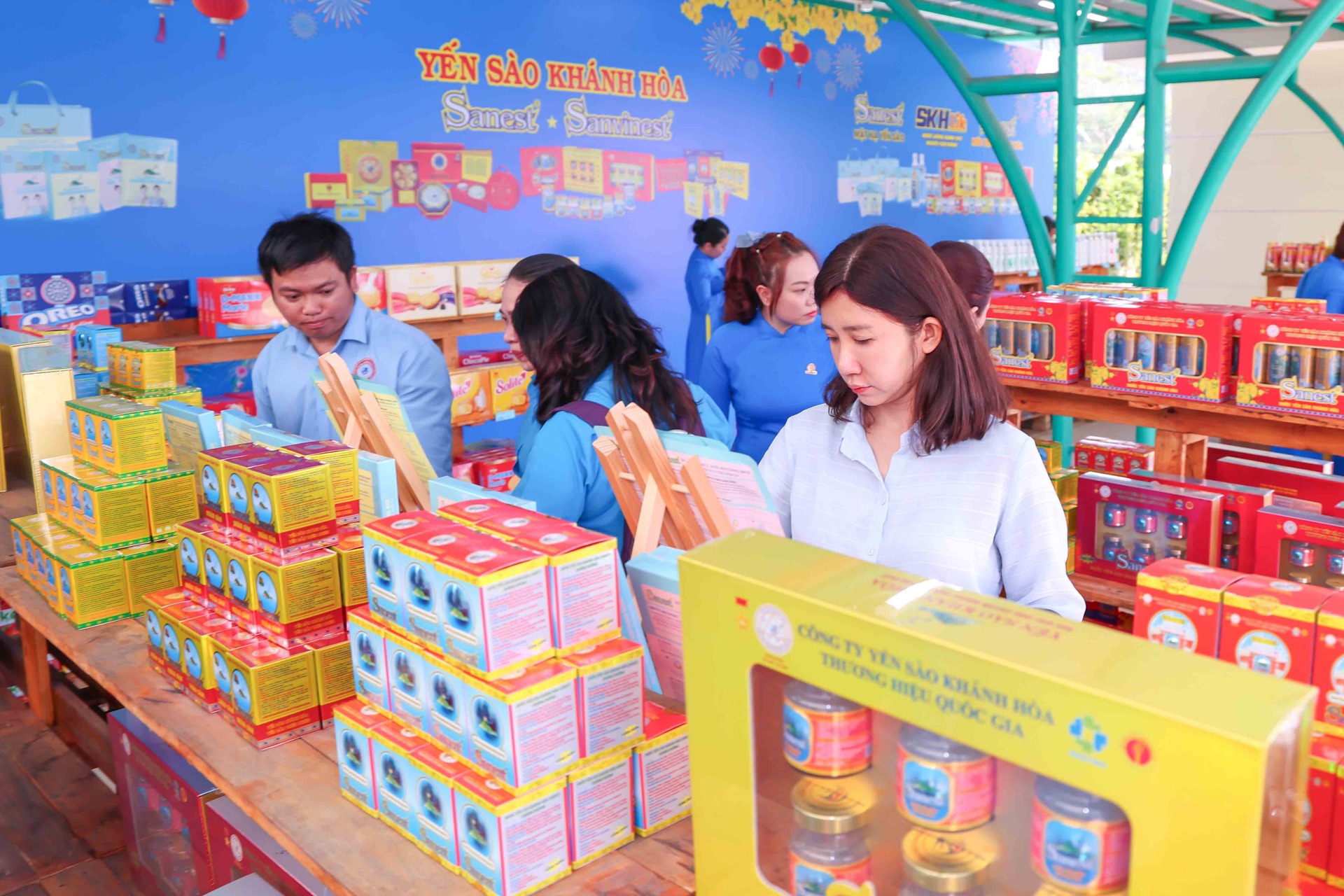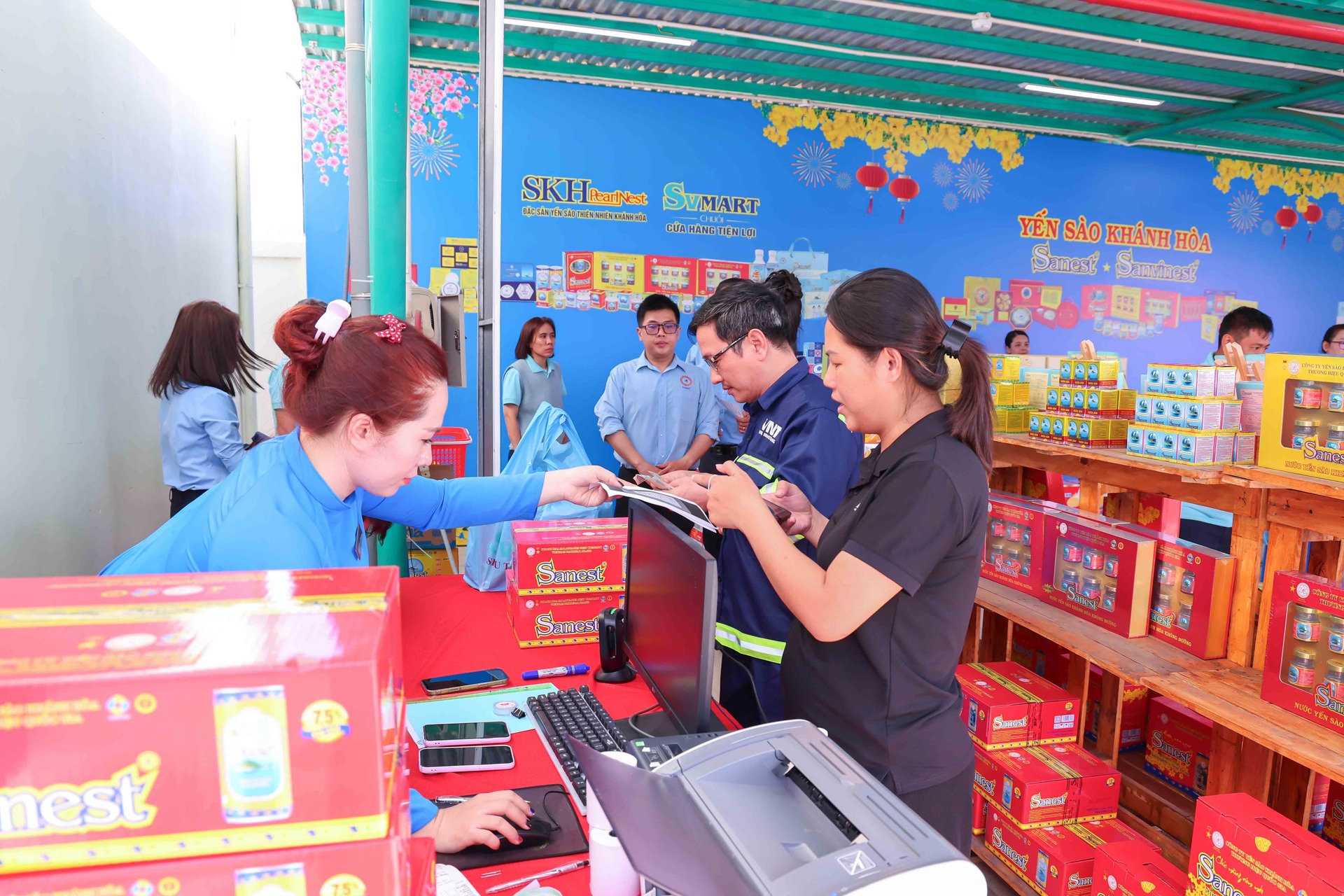 Cũng trong chương trình, Phó Chủ tịch Quốc hội Nguyễn Khắc Định đã đến tham quan gian hàng không lợi nhuận của Nhà máy Chế biến Đặc sản Yến sào. Gian hàng trưng bày các dòng sản phẩm chủ lực mang thương hiệu Yến sào Khánh Hòa, Sanest, Sanvinest, Sanest Foods được giới thiệu với mức giá ưu đãi, giúp người lao động có thêm lựa chọn chăm sóc sức khỏe cho gia đình trong dịp năm mới.