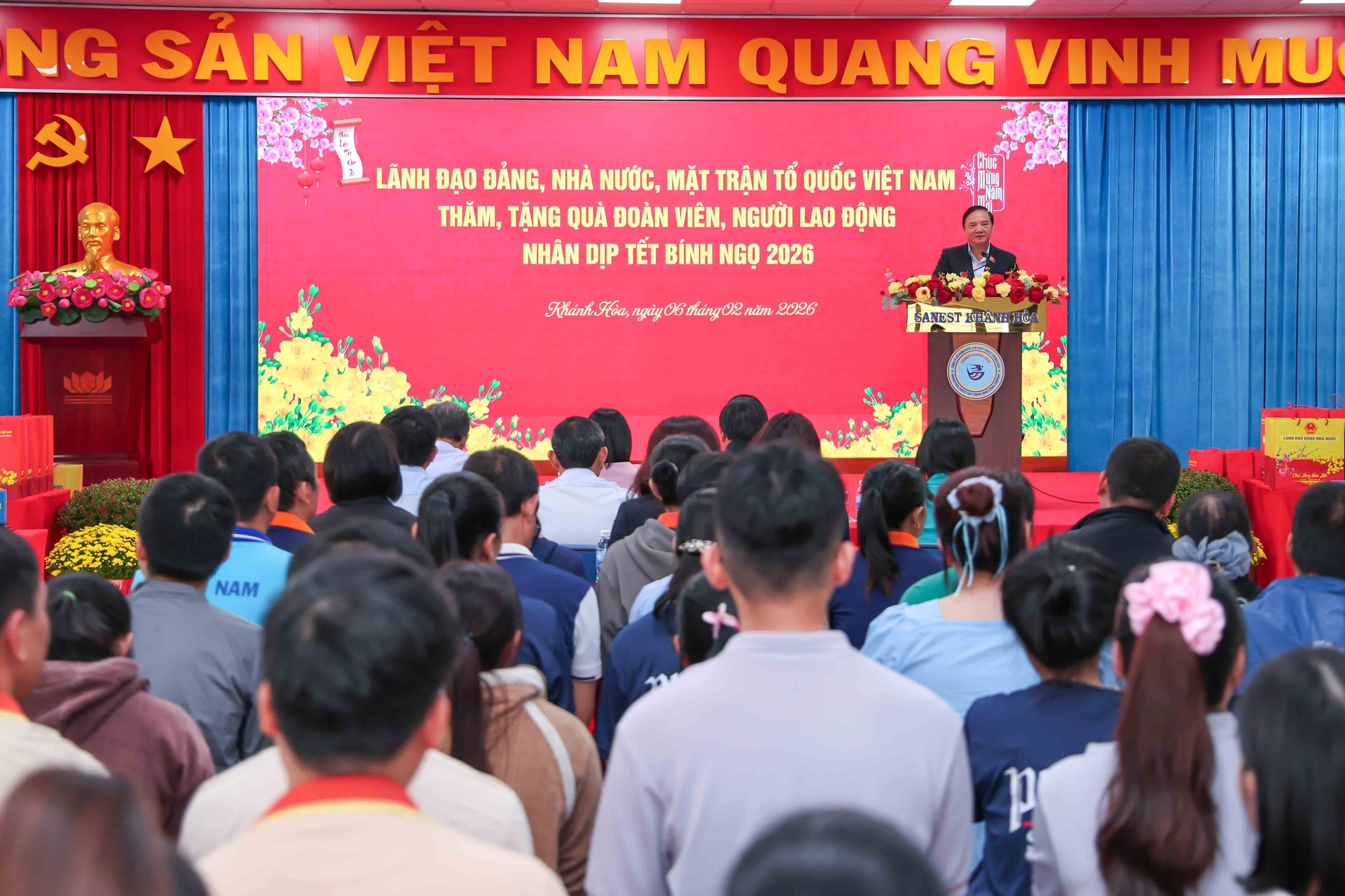 Ngày 6-2, nhân dịp Tết Nguyên đán Bính Ngọ 2026, tại Cụm Công nghiệp Diên Phú, đồng chí Nguyễn Khắc Định - Ủy viên Trung ương Đảng, Phó Chủ tịch Quốc hội cùng đoàn công tác đến thăm, tặng quà cho hộ nghèo, hộ cận nghèo, hộ có hoàn cảnh đặc biệt khó khăn, người dân tại vũng bị lũ lụt, công nhân, người lao động có hoàn cảnh đặc biệt khó khăn trên địa bàn tỉnh Khánh Hòa.