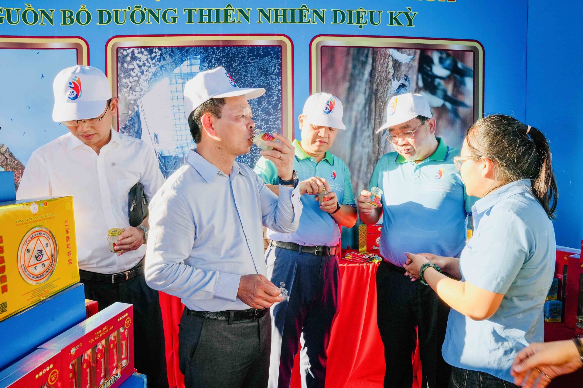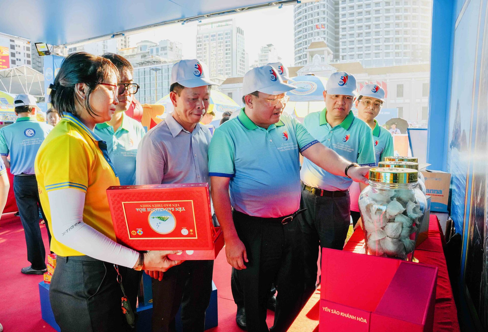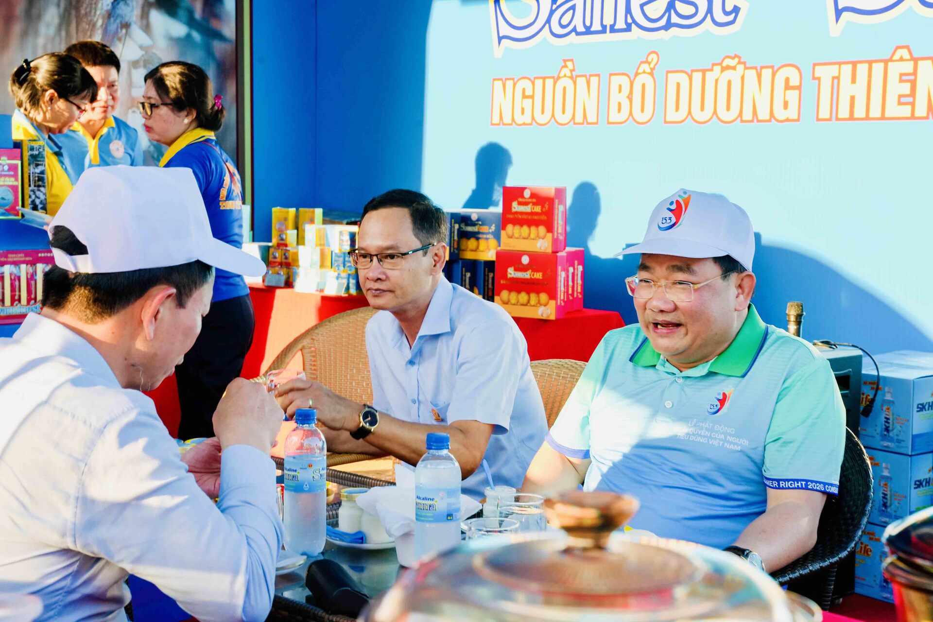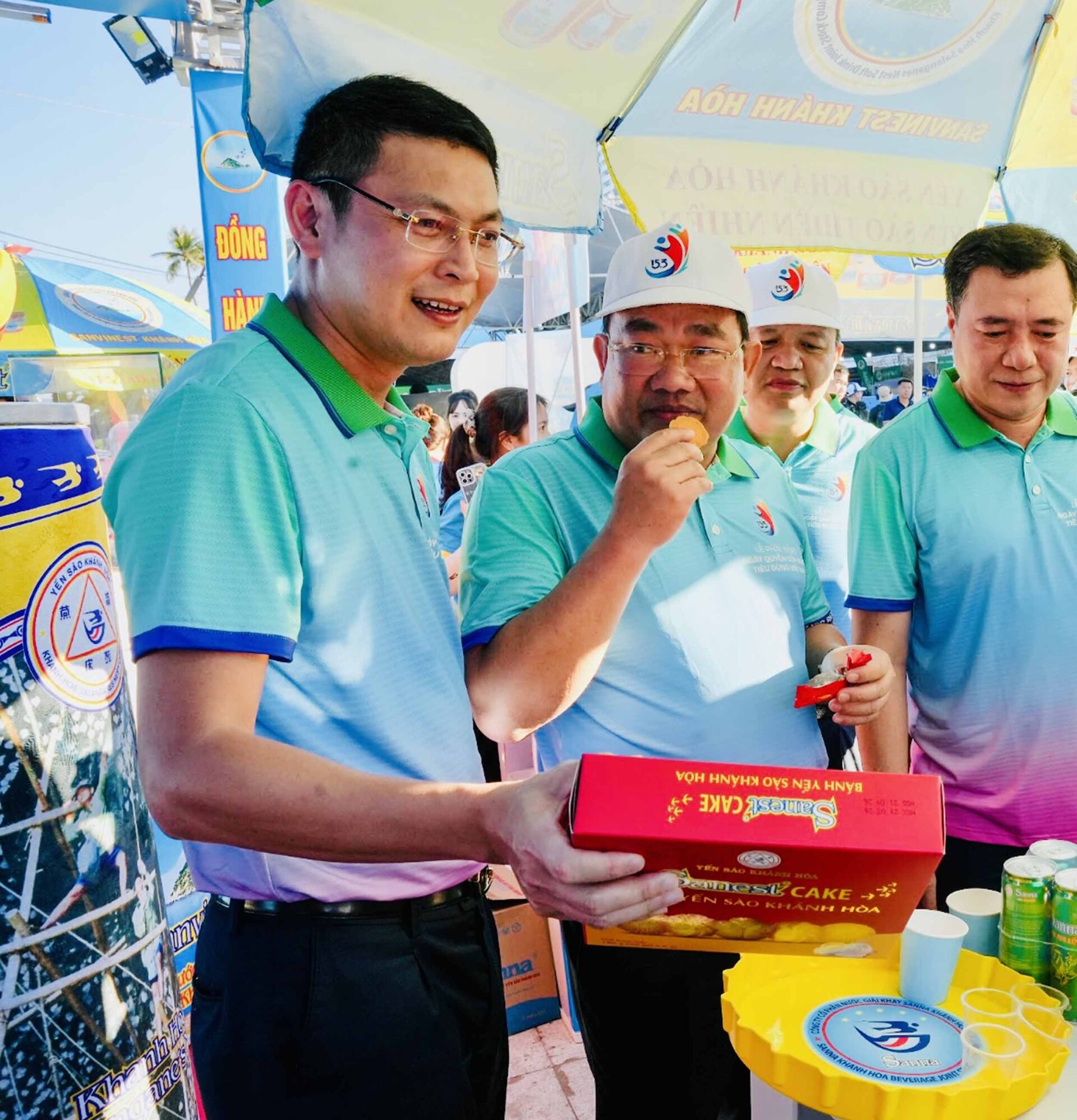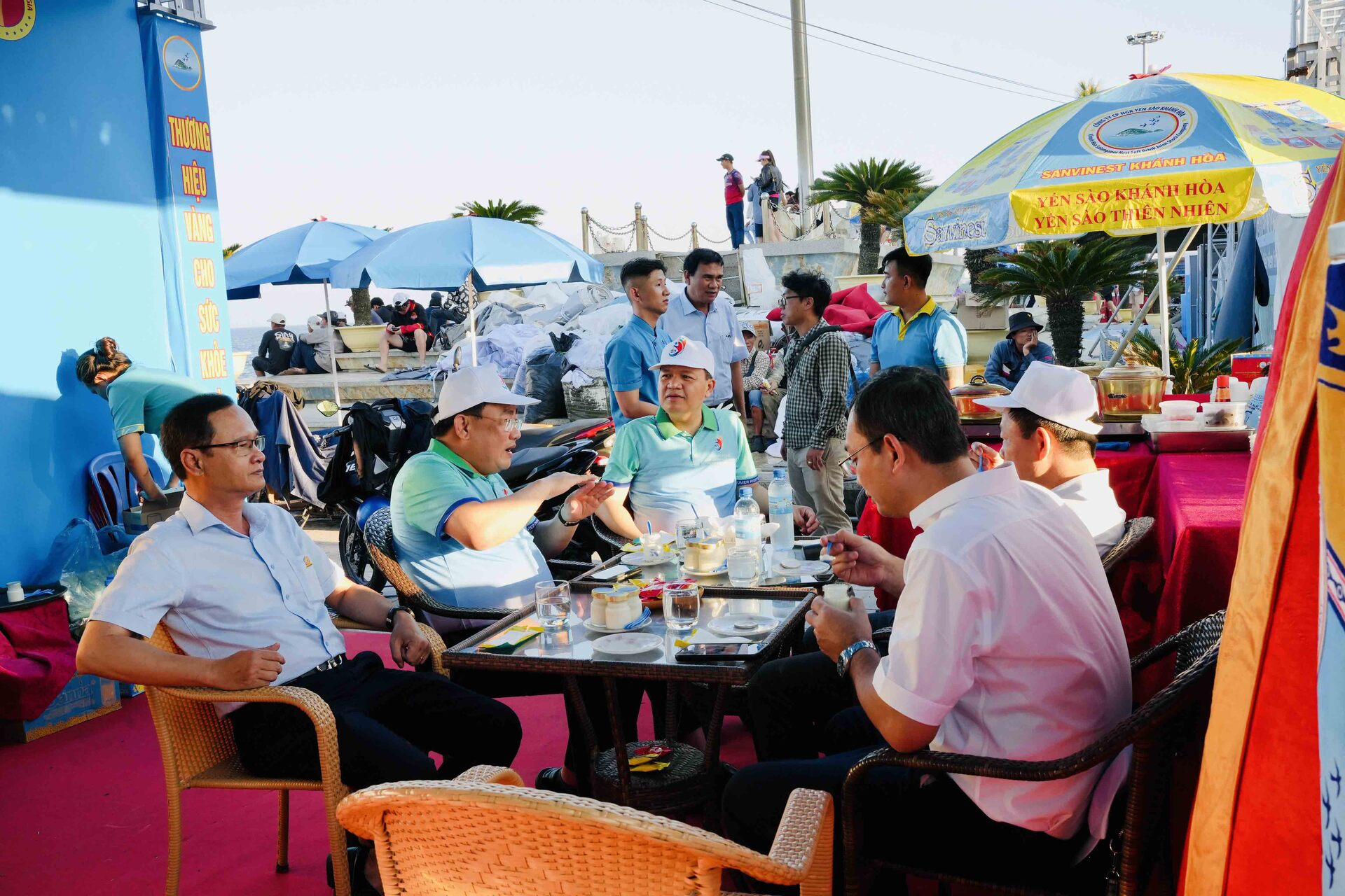 Tại đây, Phó Chủ tịch tỉnh và đại diện Ban tổ chức giải đã đánh giá cao sự chuẩn bị chu đáo của Công ty. Lãnh đạo tỉnh nhấn mạnh, việc Yến sào Khánh Hòa mang đến những sản phẩm dinh dưỡng chất lượng cao không chỉ giúp tiếp sức, phục hồi thể lực cho hơn 12.000 vận động viên, mà còn là cơ hội tuyệt vời để quảng bá đặc sản quốc gia và tiềm năng du lịch của địa phương đến du khách.