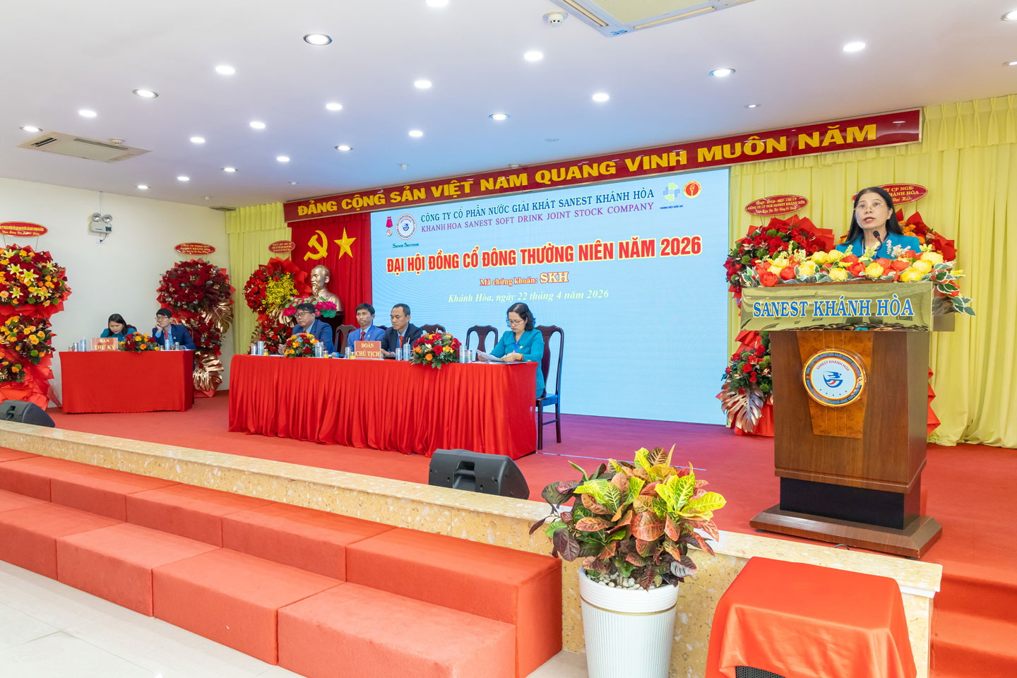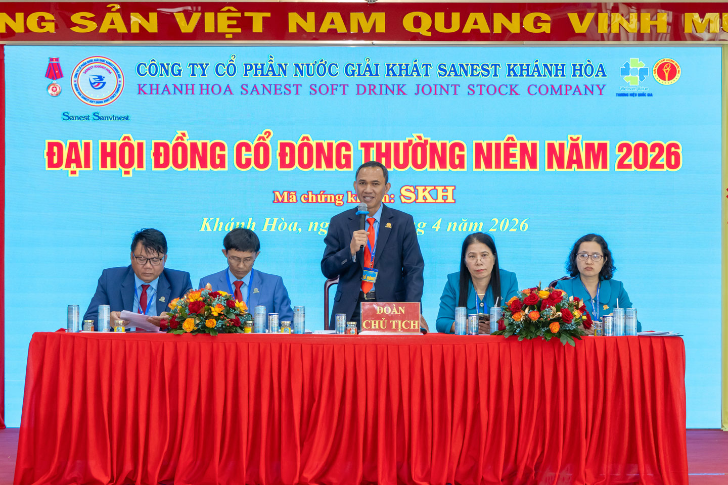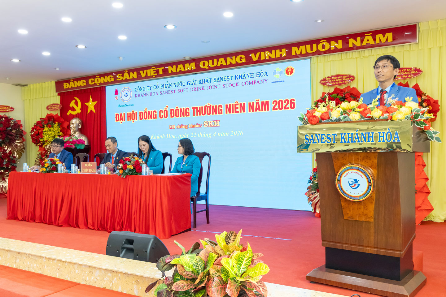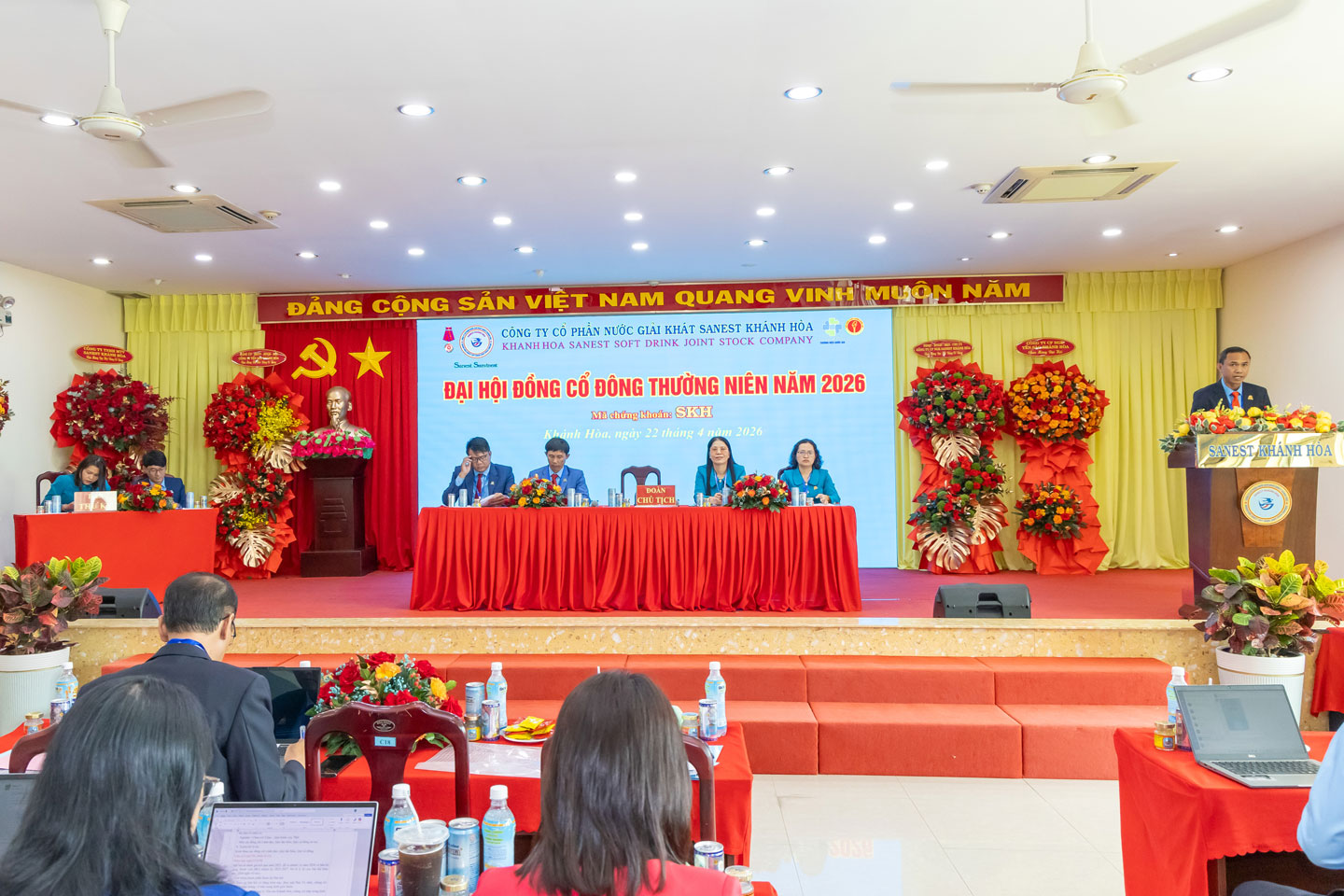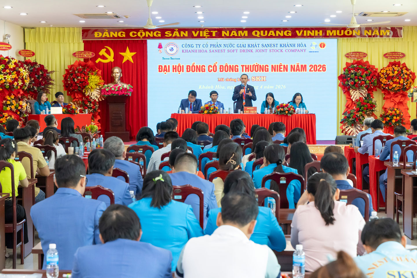 Ngày 22/4, Công ty Cổ phần Nước giải khát Sanest Khánh Hòa tổ chức thành công Đại hội đồng cổ đông thường niên năm 2026, thống nhất thông qua toàn bộ báo cáo, tờ trình quan trọng và định hướng sản xuất kinh doanh năm 2026 với sự đồng thuận cao của cổ đông.