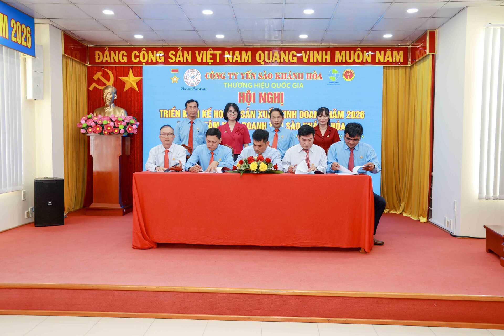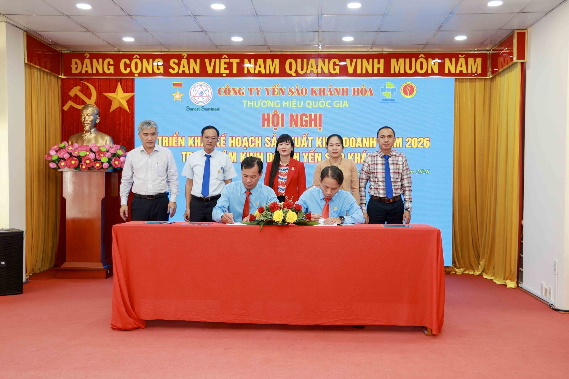 Cũng tại hội nghị, Lễ ký kết Giao ước thi đua năm 2026 được diễn ra thể hiện quyết tâm cao của tập thể Lãnh đạo, CBNLĐ trong việc thực hiện thắng lợi nhiệm vụ SXKD, xây dựng TTKD Yến sào Khánh Hòa ngày càng phát triển bền vững.