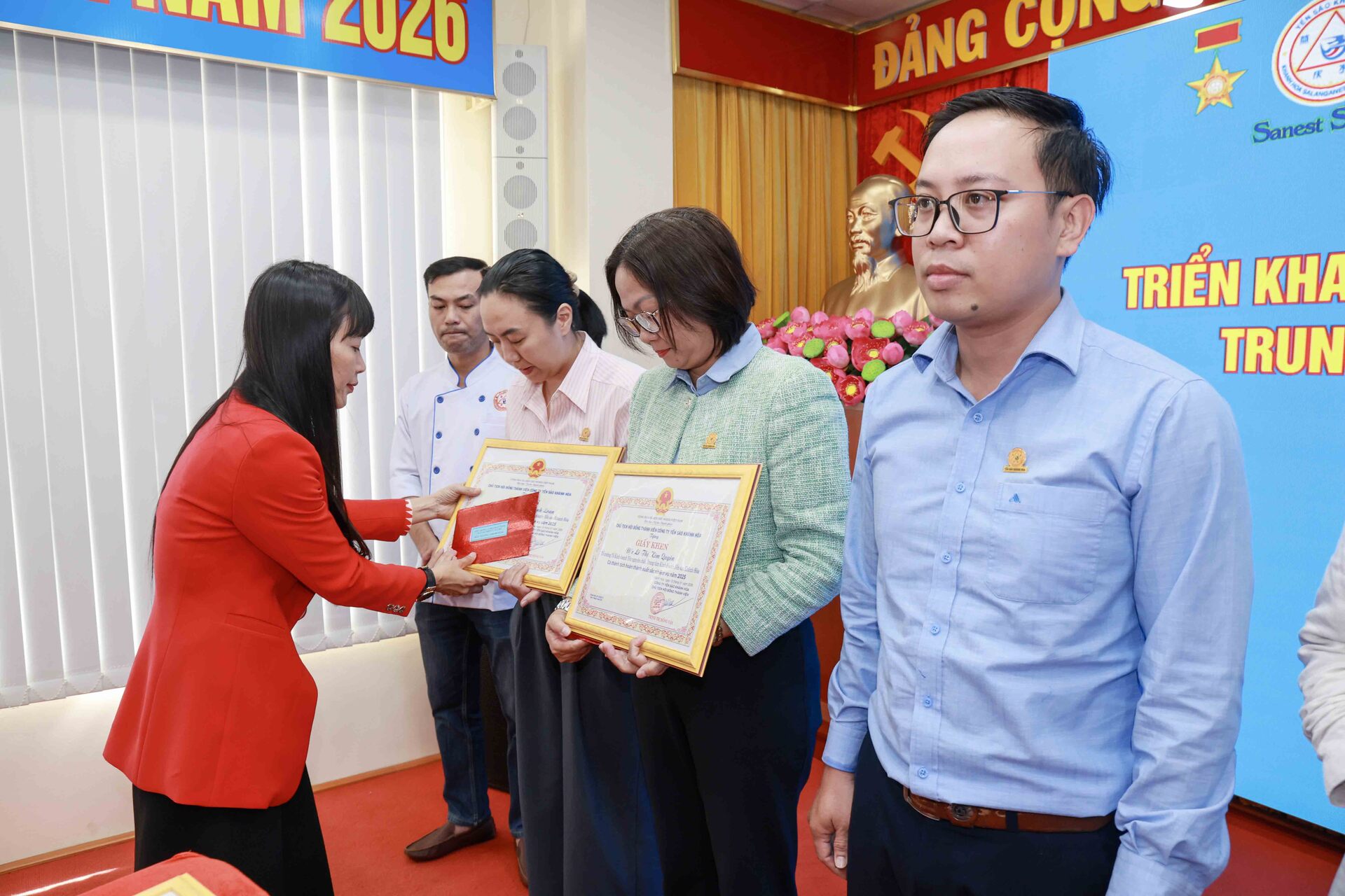 Dịp này, Ban lãnh đạo Công ty đã khen thưởng 10 cá nhân có thành tích xuất sắc trong thực hiện nhiệm vụ SXKD năm 2025.