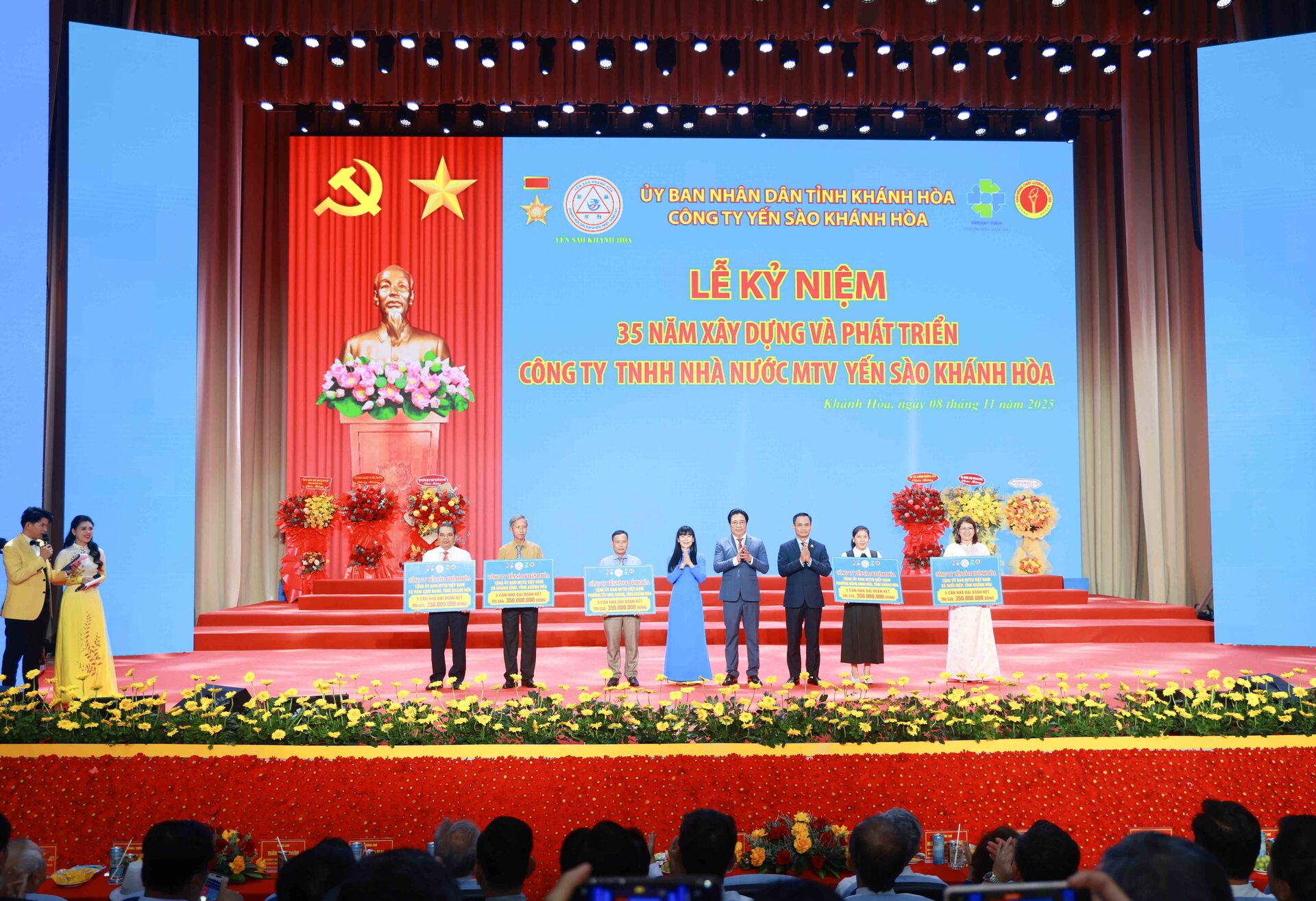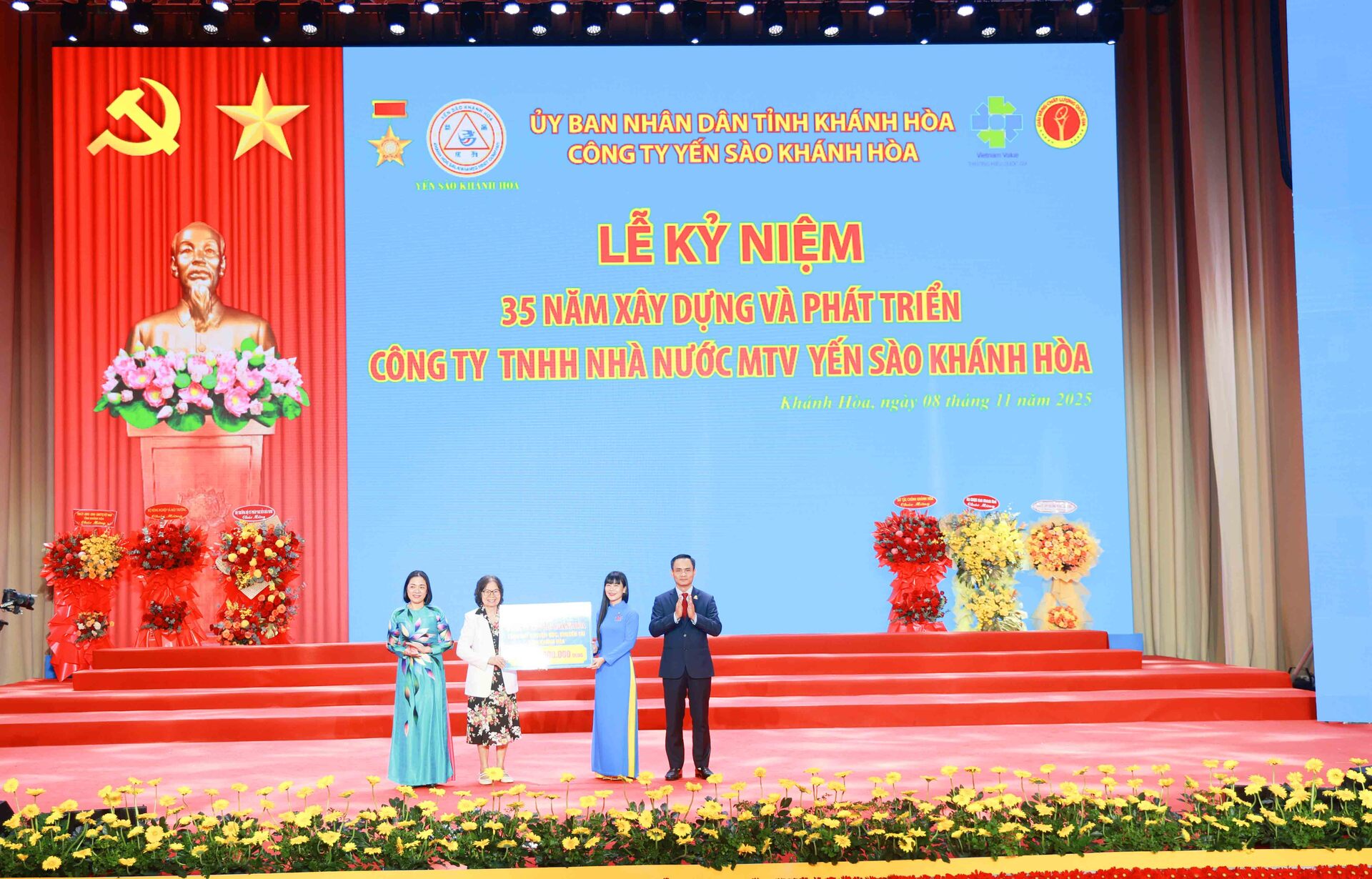 Nhân dịp này, Công ty Yến sào Khánh Hòa đã ủng hộ 1 tỷ đồng hỗ trợ đồng bào các tỉnh khắc phục hậu quả bão lũ và trao tặng 35 Nhà Đại đoàn kết cho các hộ gia đình có hoàn cảnh khó khăn trên địa bàn tỉnh; đồng thời, đóng góp 200 triệu đồng vào Quỹ khuyến học, khuyến tài tỉnh.