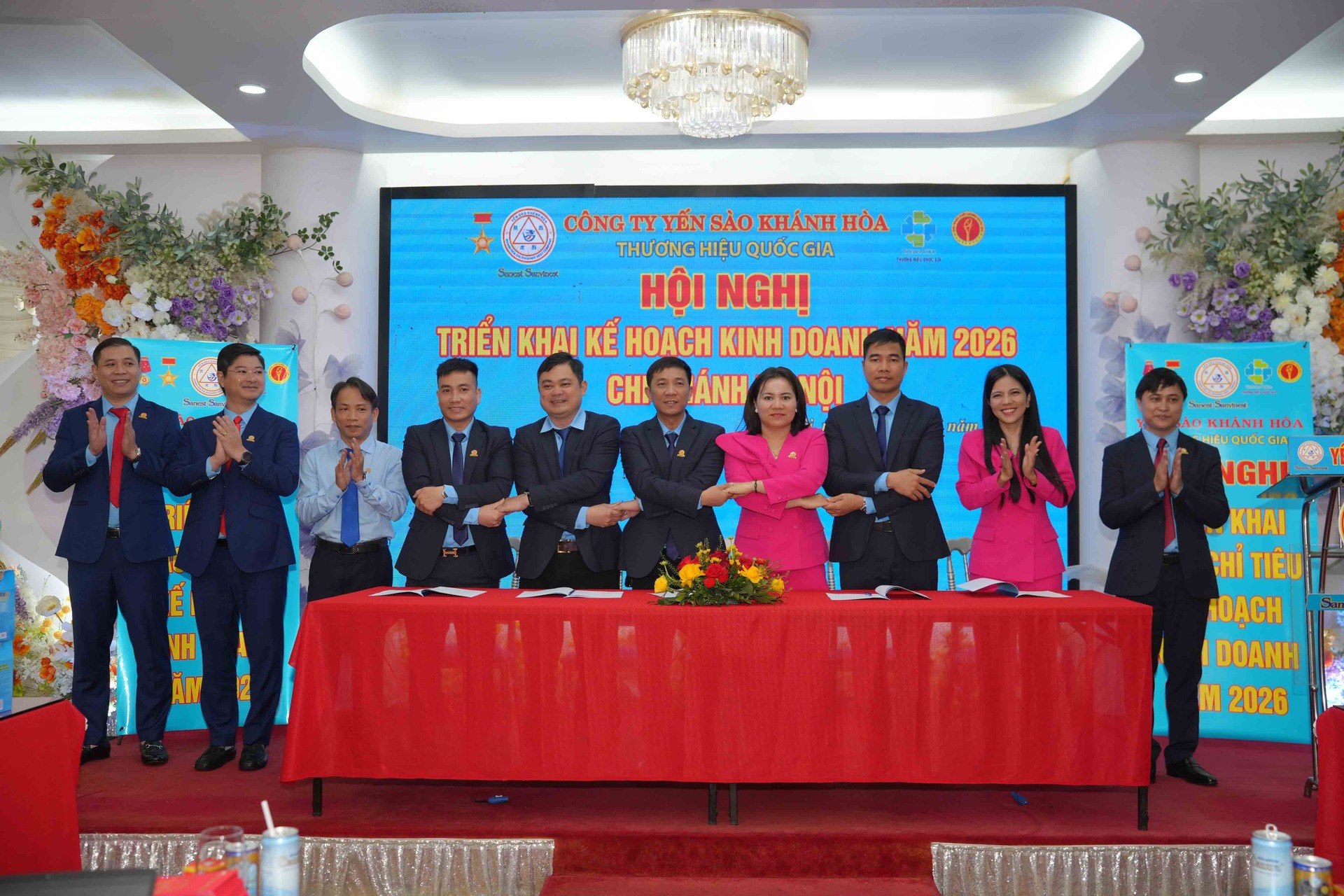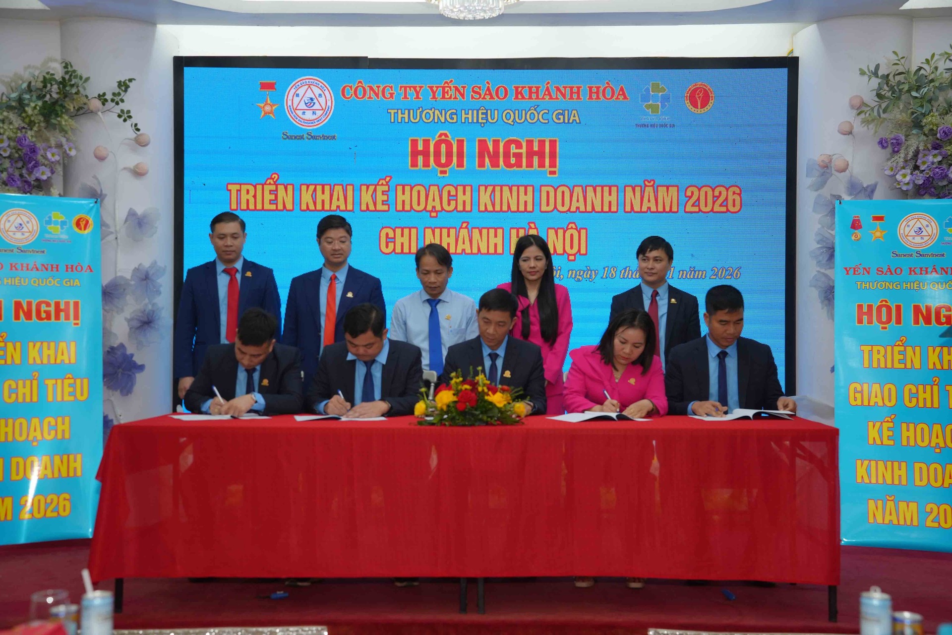 Cũng tại hội nghị, Lễ ký kết Giao ước thi đua năm 2026 và công bố các Quyết định về công tác nhân sự được diễn ra thể hiện quyết tâm cao của tập thể Lãnh đạo, CBNV toàn Chi nhánh trong việc củng cố, xây dựng hệ thống chi nhánh ngày càng phát triển bền vững, xứng đáng là cầu nối chiến lược của Yến sào Khánh Hòa tại thị trường miền Bắc.