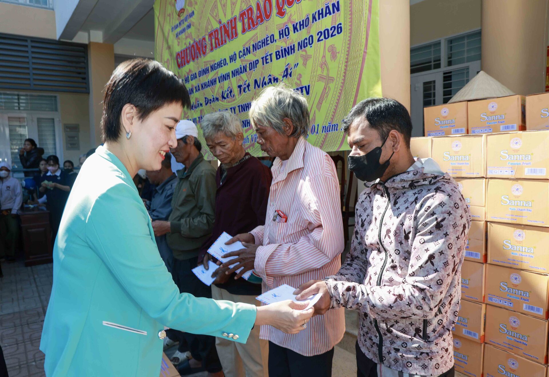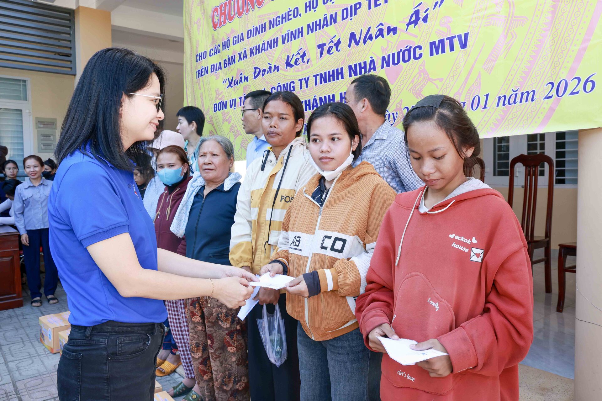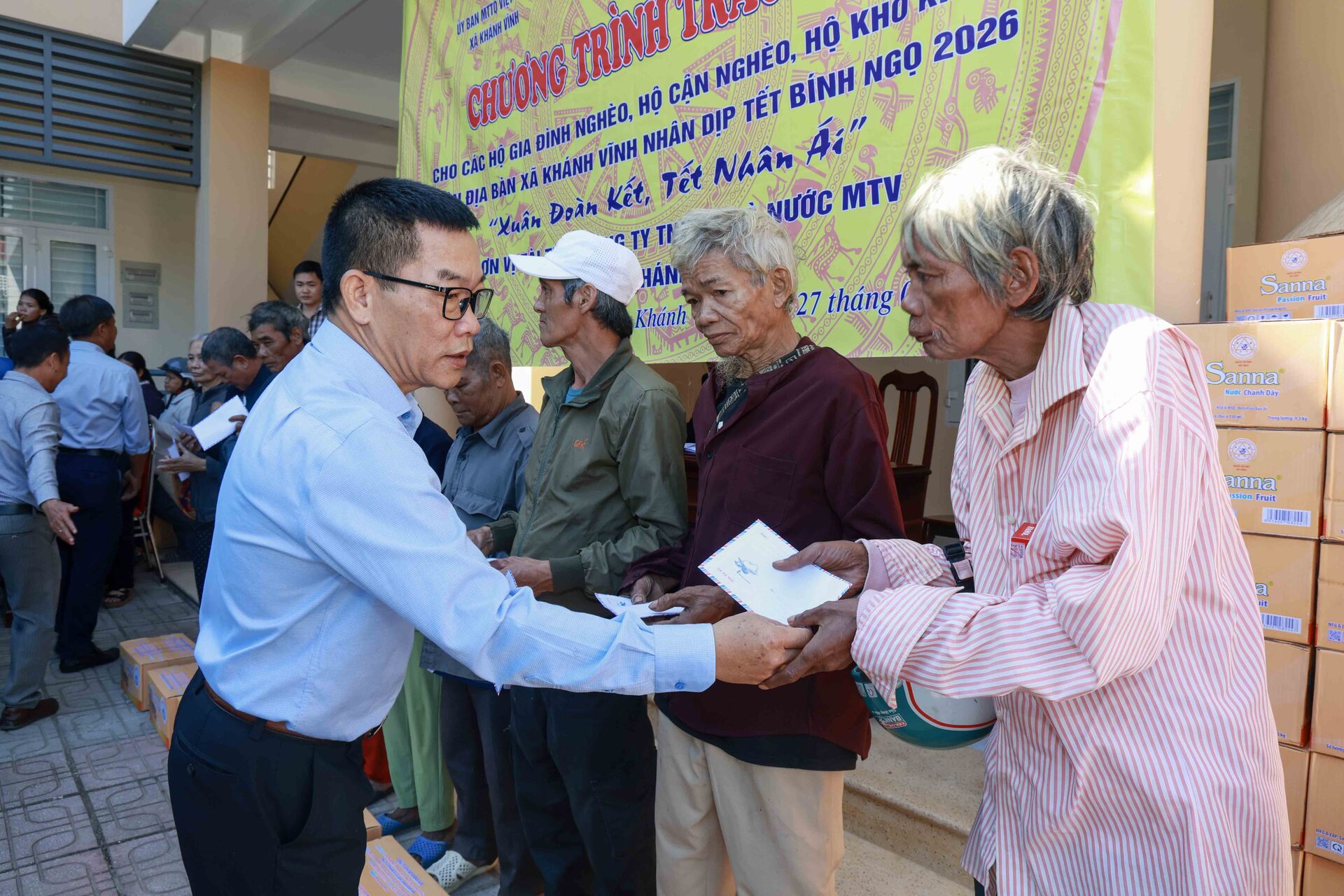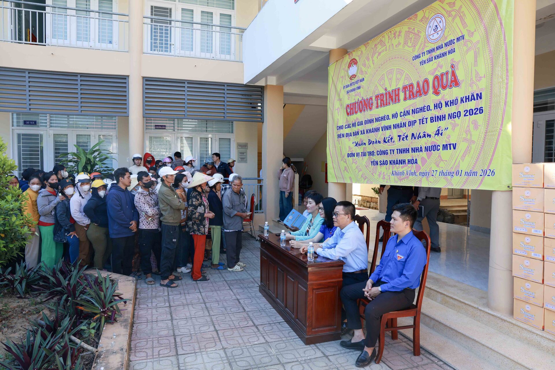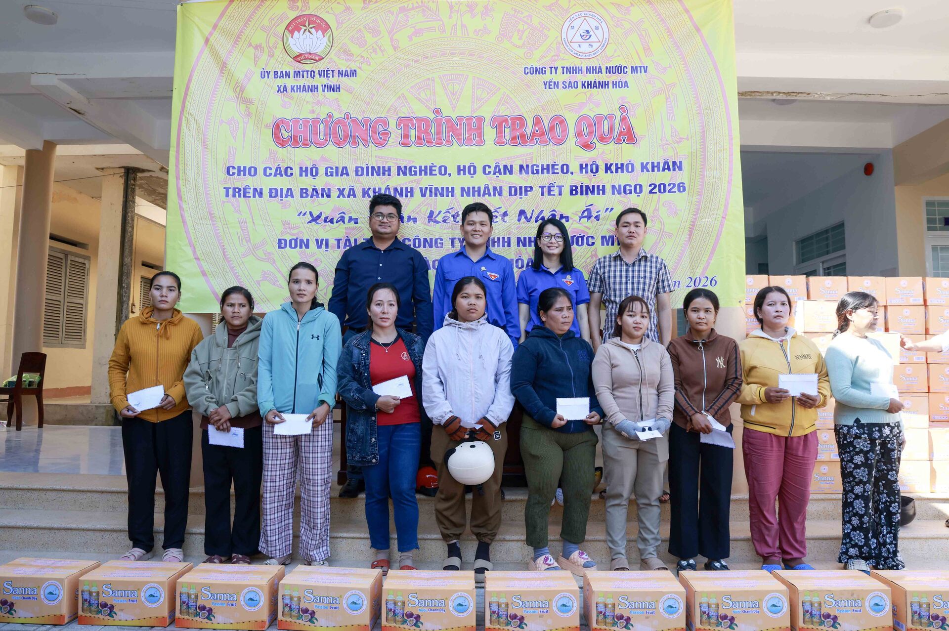 Theo đó, sáng ngày 27/01/2026, Công ty Yến sào Khánh Hòa phối hợp cùng Ban Thường trực Ủy ban MTTQ Việt Nam xã Khánh Vĩnh tổ chức cấp phát 300 suất quà, với tổng trị giá 150 triệu đồng dành tặng các hộ dân bị ảnh hưởng bởi thiên tai và có hoàn cảnh khó khăn trên địa bàn xã Khánh Vĩnh nhân dịp Tết Bính Ngọ 2026, với chủ đề “Xuân Đoàn Kết, Tết Nhân Ái”.