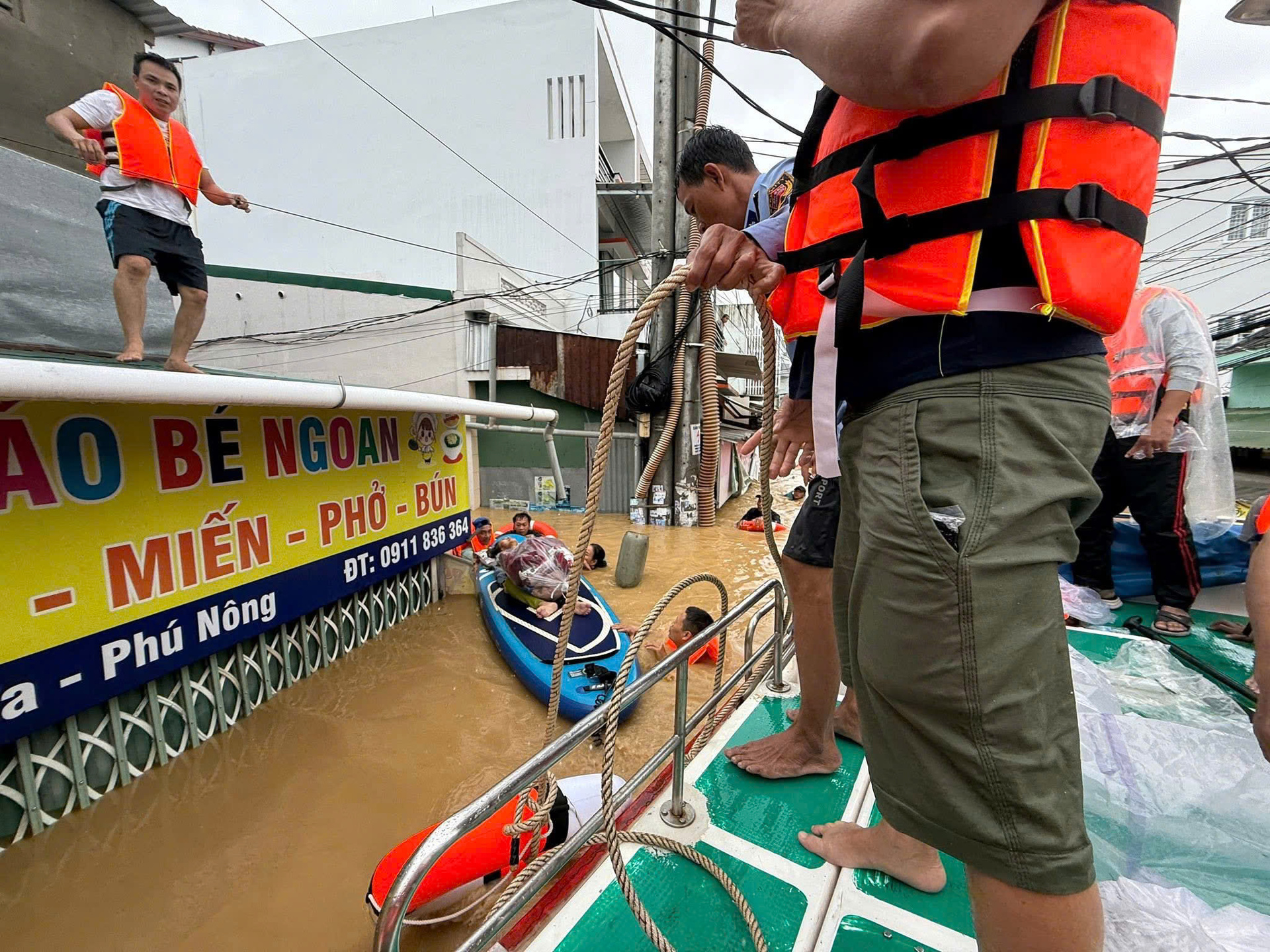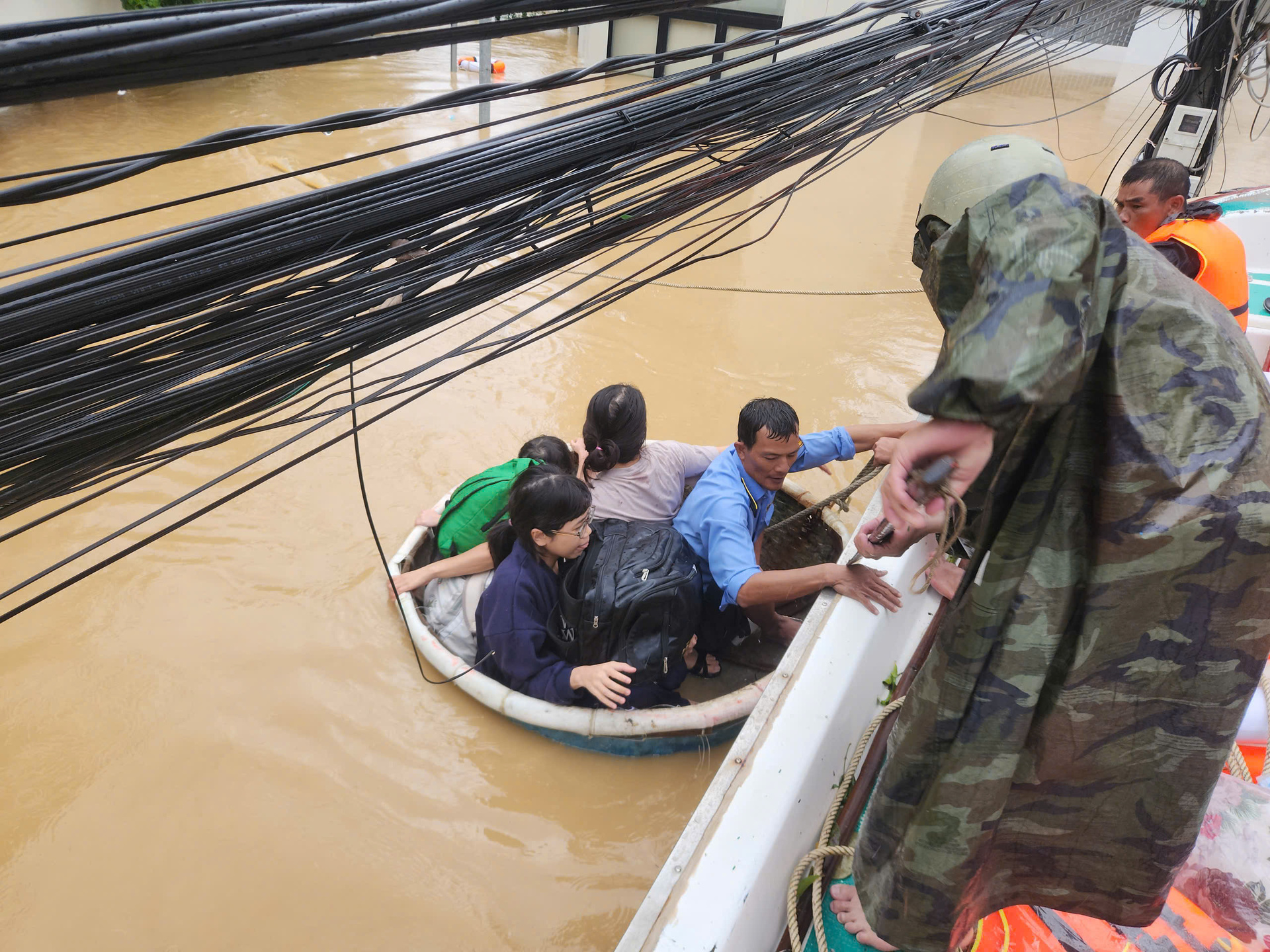 Từ sáng 20/11, Công ty Yến sào Khánh Hoà đã điều động 7 ca nô, thuyền thúng cùng hơn 200 lực lượng cứu hộ và cứu trợ đến các địa bàn đang bị ngập sâu, nơi lực lượng chức năng gặp nhiều trở ngại trong tiếp cận bằng đường bộ.