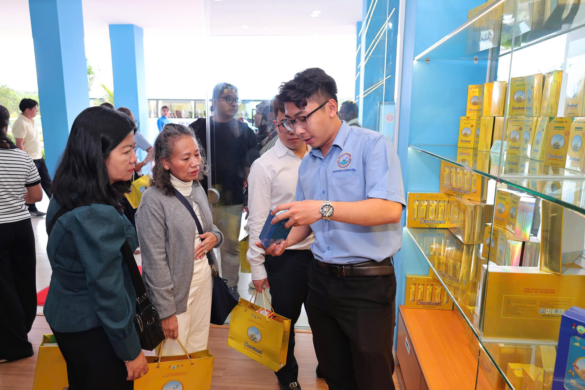 Theo đó, Công ty TNHH Nhà nước một thành viên Yến sào Khánh Hòa (Công ty Yến sào Khánh Hòa) đã có buổi làm việc với Đoàn công tác trong nước và quốc tế tham dự Hội thảo quốc tế về công nghệ thông tin dành cho cơ quan sở hữu trí tuệ, đến tham quan Nhà máy Chế biến nguyên liệu yến sào Sanvinest Khánh Hòa.