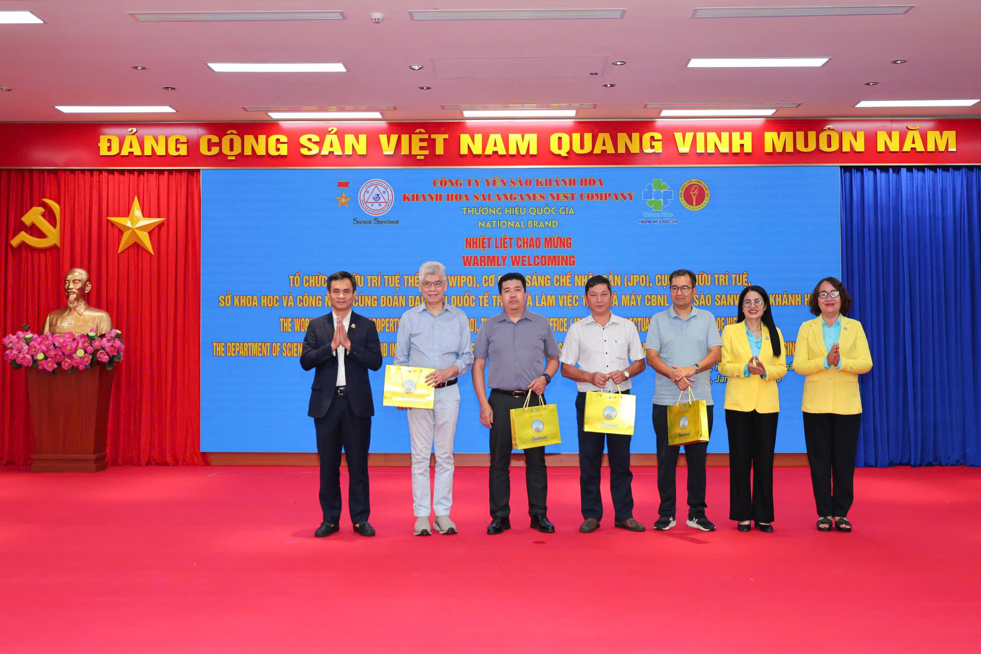 Chiều 23/1, Công ty Yến sào Khánh Hòa đã đón tiếp và làm việc với Đoàn công tác quốc tế tham dự Hội thảo quốc tế về công nghệ thông tin dành cho cơ quan sở hữu trí tuệ. Chương trình có sự tham gia của đại diện WIPO, Cơ quan Sáng chế Nhật Bản (JPO) và nhiều tổ chức trong khu vực.