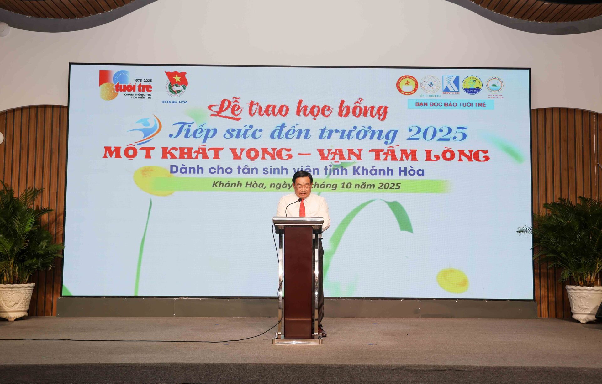 ⏰Chiều 18/10/2025, tại Trung tâm Hội nghị Âu Lạc Thịnh (Khánh Hoà), chương trình “Tiếp sức đến trường 2025 – Một khát vọng, vạn tấm lòng” do Báo Tuổi Trẻ phối hợp cùng Tỉnh đoàn Khánh Hòa tổ chức đã diễn ra trang trọng và ấm áp.