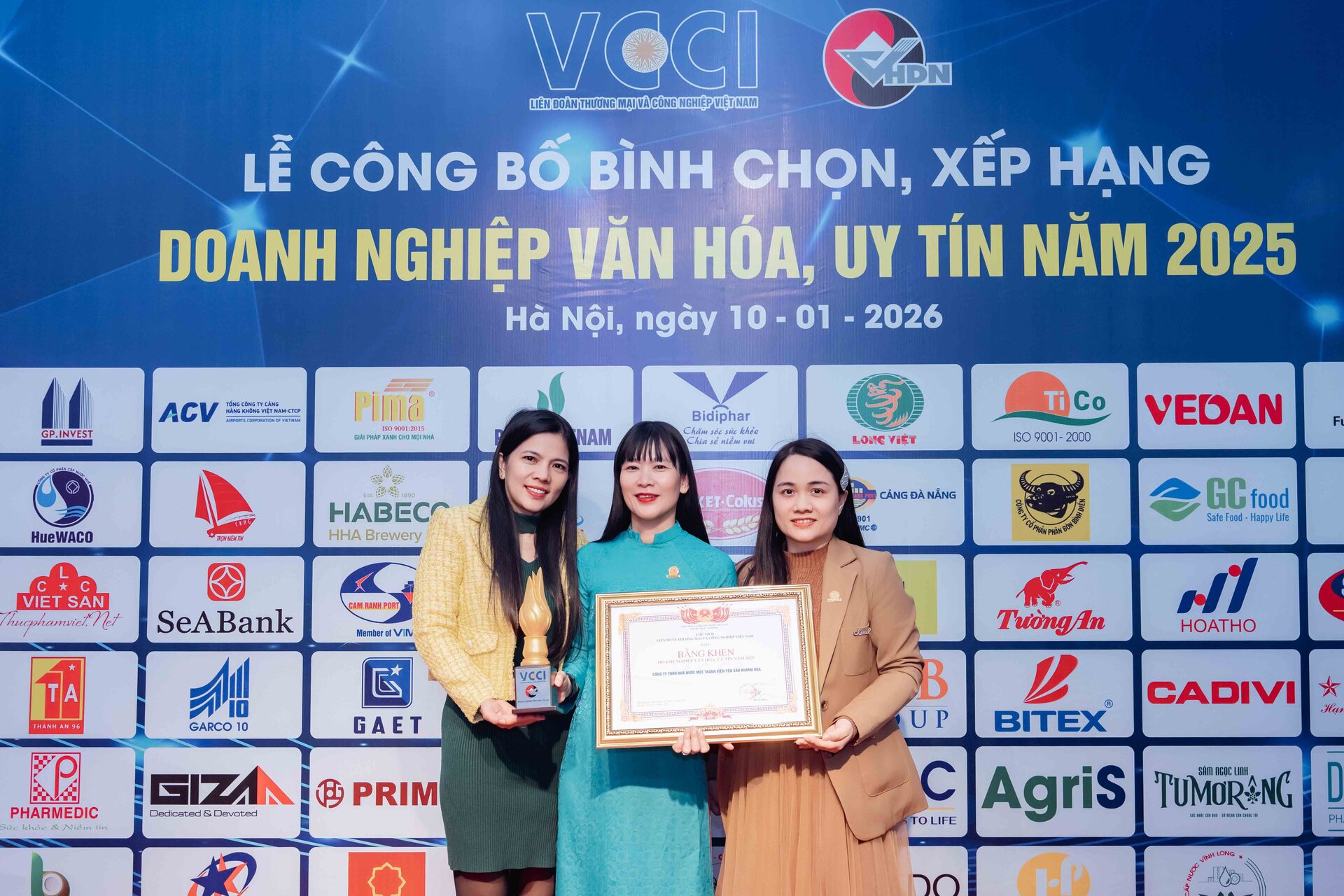 Ngày 10/1, tại Hà Nội, Công ty Yến sào Khánh Hòa đã xuất sắc được vinh danh “Top 20 Doanh nghiệp văn hóa, uy tín năm 2025”. Giải thưởng do Liên đoàn Thương mại và Công nghiệp Việt Nam (VCCI) tổ chức.