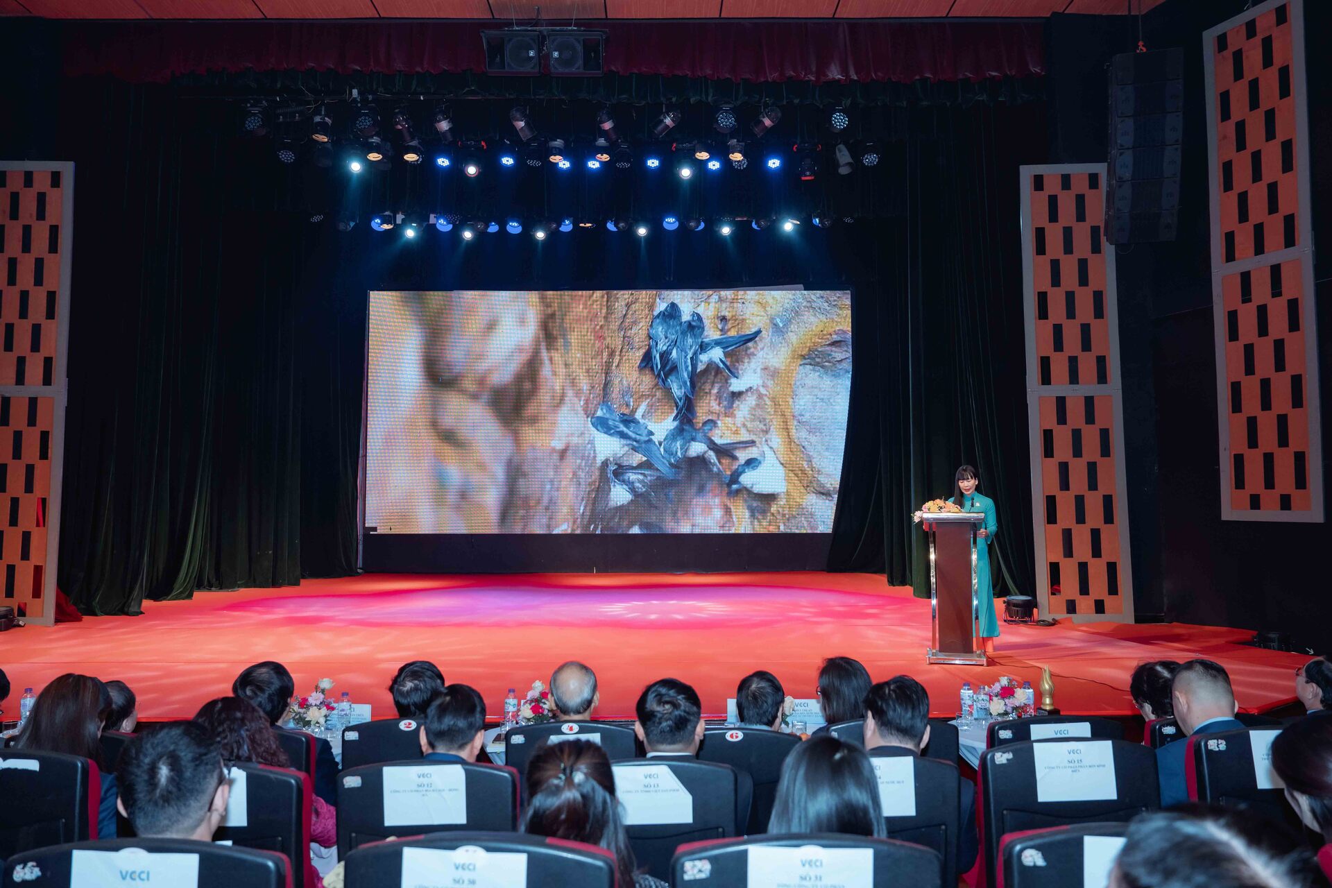 Vinh dự đại diện 20 doanh nghiệp phát biểu tại buổi lễ, bà Trịnh Thị Hồng Vân – Chủ tịch HĐTV Công ty nhấn mạnh “Là doanh nghiệp Nhà nước đặc thù, gắn với di sản văn hóa và tài nguyên biển đảo, Yến sào Khánh Hòa luôn ý thức sâu sắc trách nhiệm bảo tồn và khai thác bền vững tài nguyên, hài hòa lợi ích giữa Nhà nước – doanh nghiệp – cộng đồng; đồng thời giữ vai trò lan tỏa các giá trị văn hóa và chuẩn mực đạo đức kinh doanh trong ngành yến sào Việt Nam.”