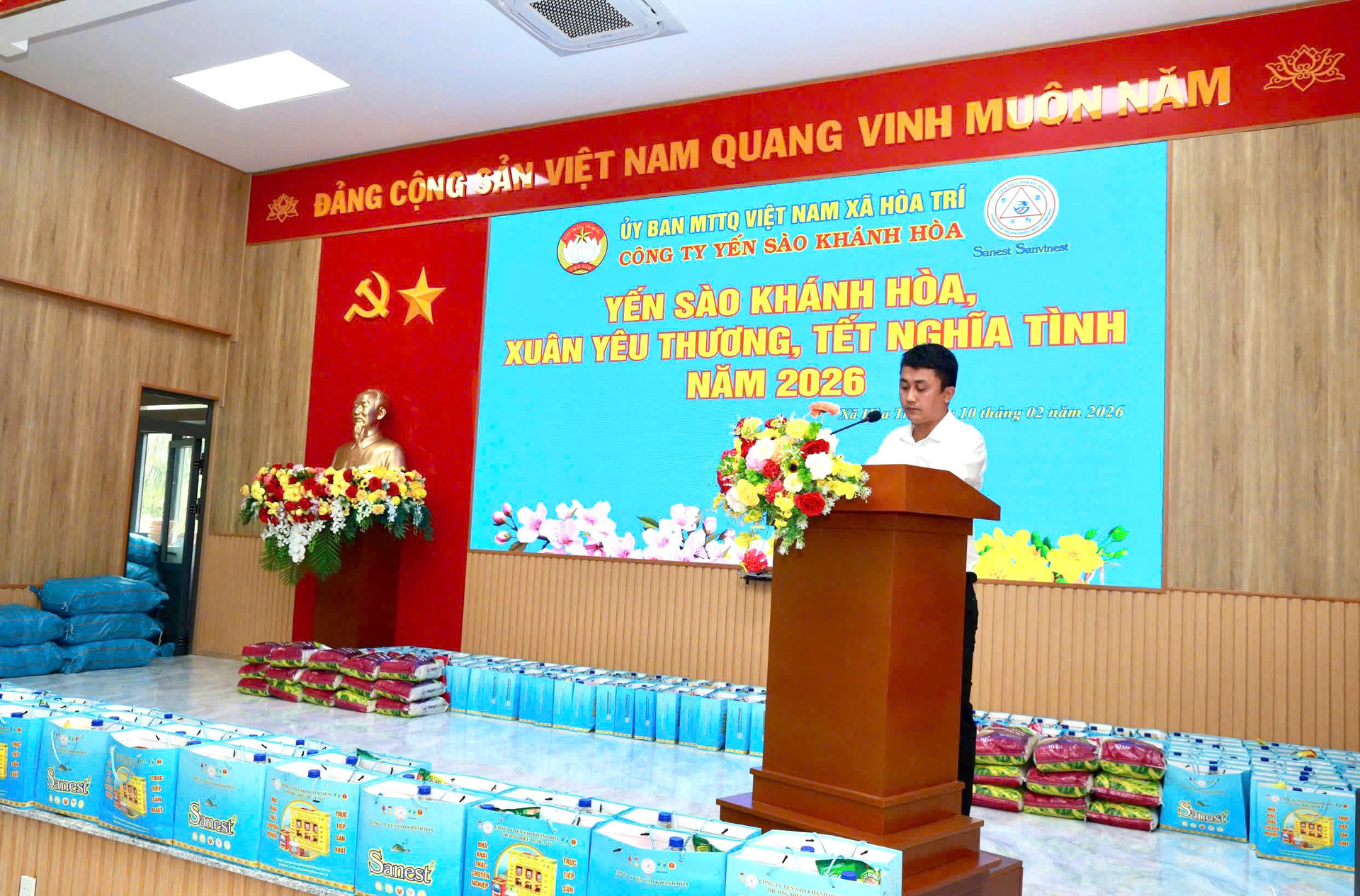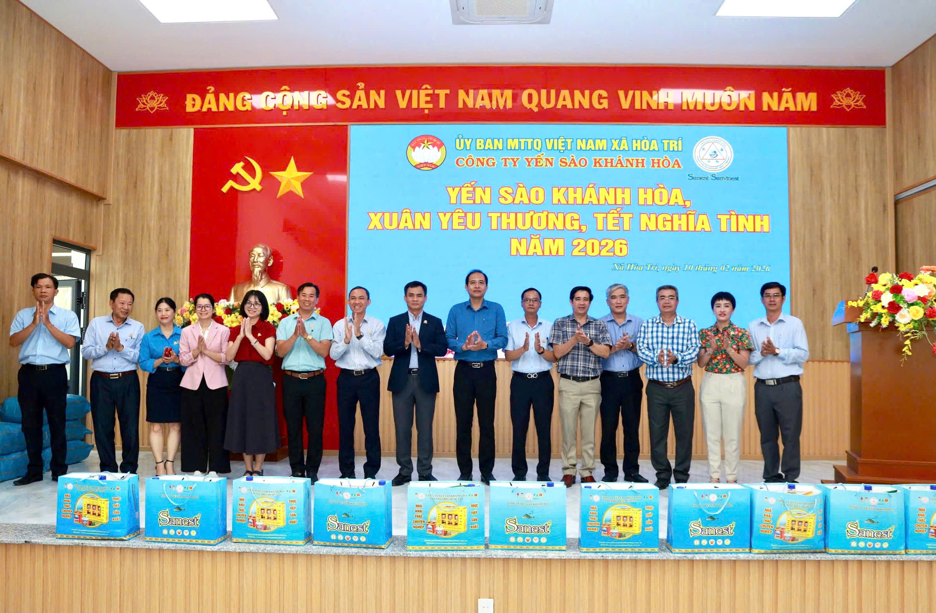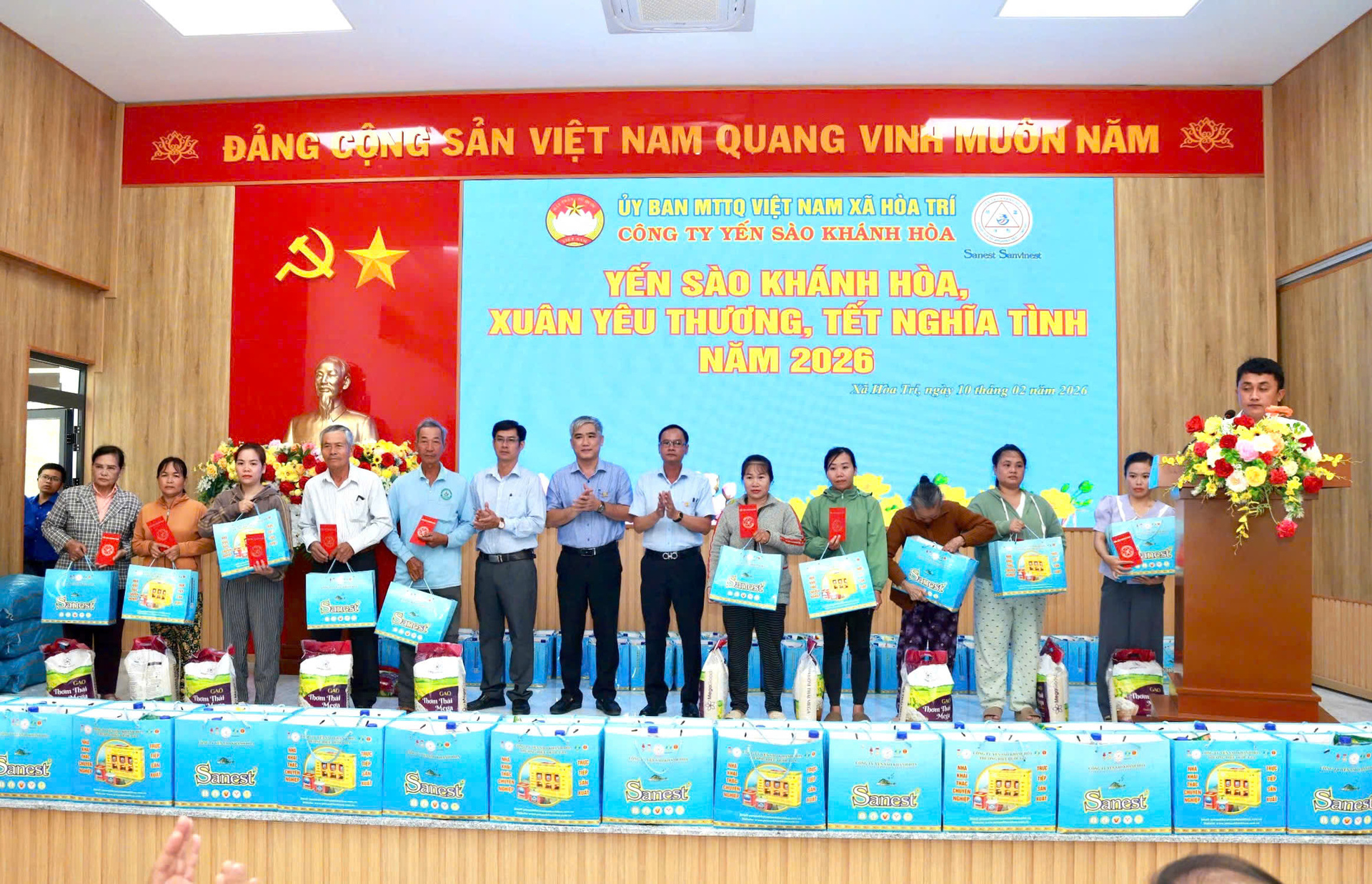 Sáng ngày 10/02/2026, Công ty Yến sào Khánh Hòa trang trọng tổ chức chương trình “Xuân chia sẻ – Tết yêu thương” năm 2026 nhằm thăm hỏi, chúc Tết và trao tặng nhiều phần quà ý nghĩa đến bà con có hoàn cảnh khó khăn tại P. Đông Ninh Hòa và xã Hòa Trí, tỉnh Khánh Hòa.